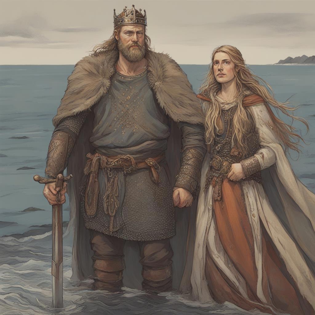 Интересно, чего это они в море залезли? И меч какой-то странный. Корона еще. Оборжаться.
