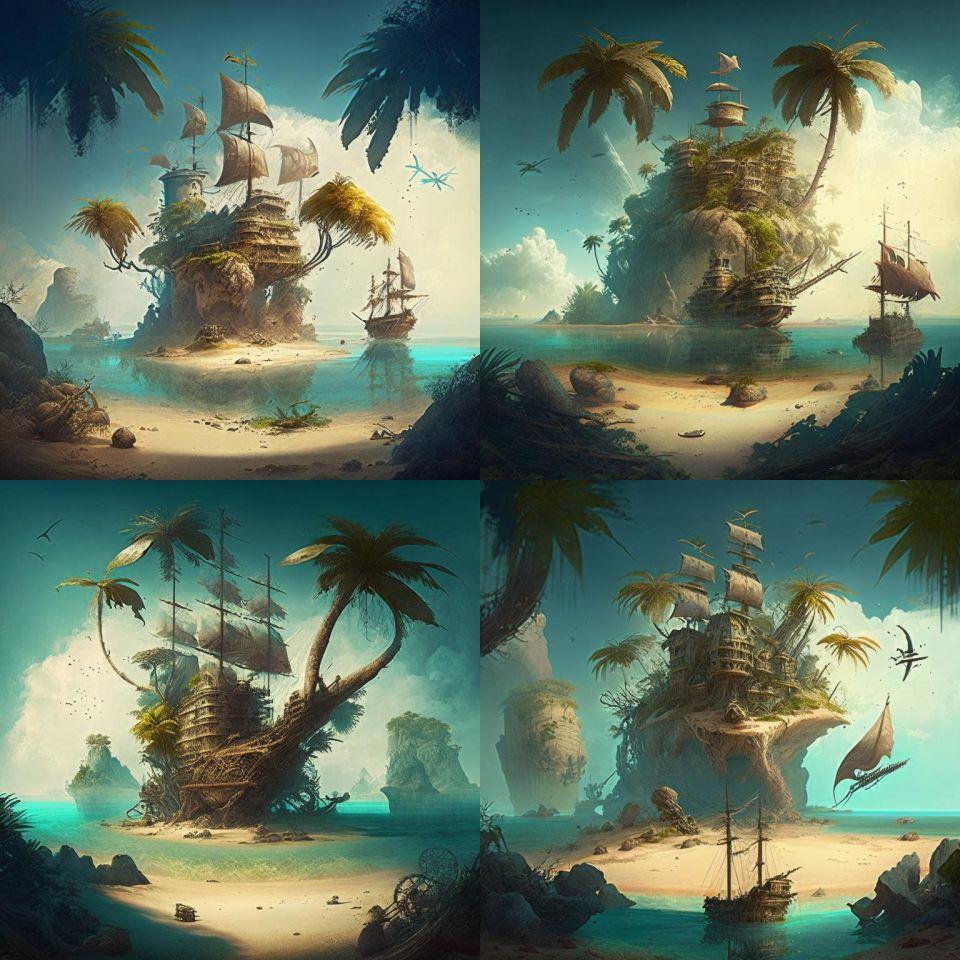 А чё? Остров в наличии, аллюзии к Стивенсону в виде парусников наличествуют. Сокровища? Сокровища, как им и положено, зарыты! :)))