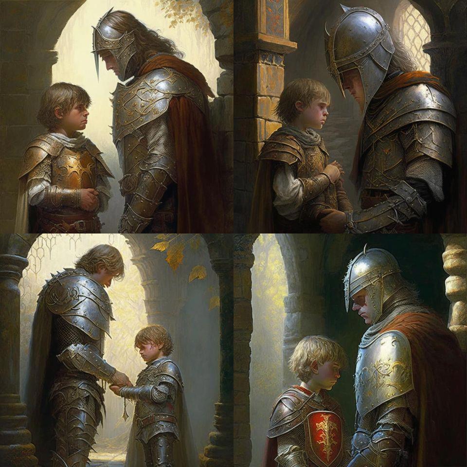14. Сын своего отца. Всё абсолютно ожидаемо: Крошка сын пришёл к отцу, и спросила кроха: "А два носа - хорошо или очень плохо?" :))) И поскольку грешен, ради эксперимента поставил в запросе слова "Рыцарский роман", то рыцарей на картинках не быть просто не могло.