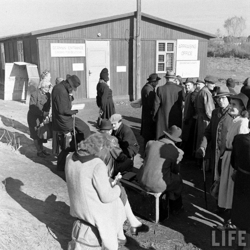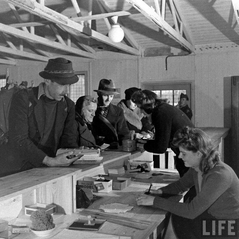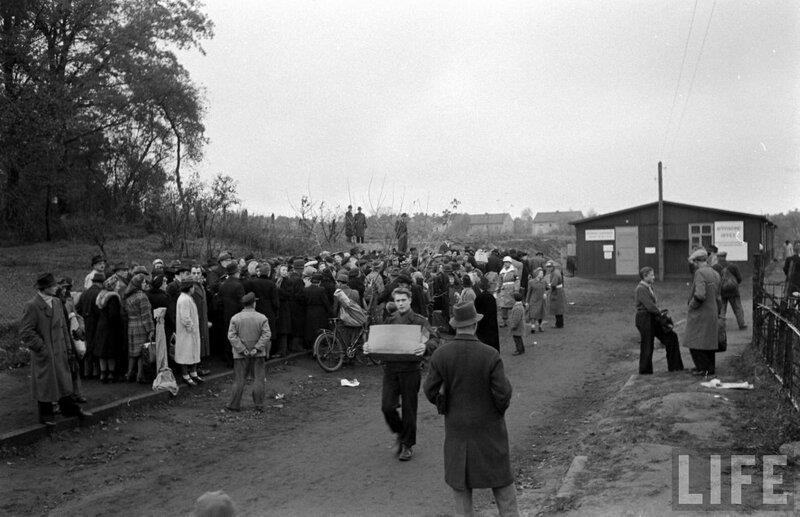 Автор: Николай БергПункт обмена вещей на сигареты, организованный в американском секторе Берлина. Снимки сделаны в декабре 1946-го года Уолтером Сандерсом, опубликованы в журнале Лайф. Парень в центре явно что-то очень ценное наменял - короб с сигаретами тащит.