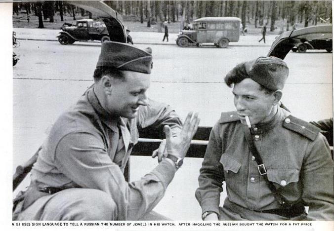 Кроме сигарет, спросом пользовались и наручные часы, особенно среди советских военнослужащих, которые располагали весьма солидными суммами оккупационных марок - в 1944 американцы передали СССР клише для их печати, о чем потом сильно пожалели. Русские были крупнейшими покупателями на черном рынке.