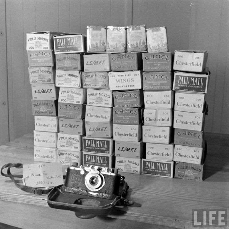 "Сигареты были главным предметом перепродажи. Город был наводнен обесцененными оккупационными марками, которые нам можно было обменять по искусственному курсу 10 марок за доллар. В военторге для американских военнослужащих покупался блок сигарет за 50 центов. Затем сигареты перепродавались на черном рынке по 10 марок ЗА ОДНУ СИГАРЕТУ, и затем вырученные марки обменивались на доллары. В итоге на 50 центов инвестиций легко получалось 200 долларов прибыли (по другим источникам "всего лишь" 100 $). Продав таким образом 3-4 блока, можно было купить фотокамеру Лейка или кольцо с бриллиантом. Ну или можно было просто отослать домой полученные 200 долларов, пока правила не поменялись и суммы денежных переводов не ограничили размером месячного денежного довольствия военнослужащего"(с)