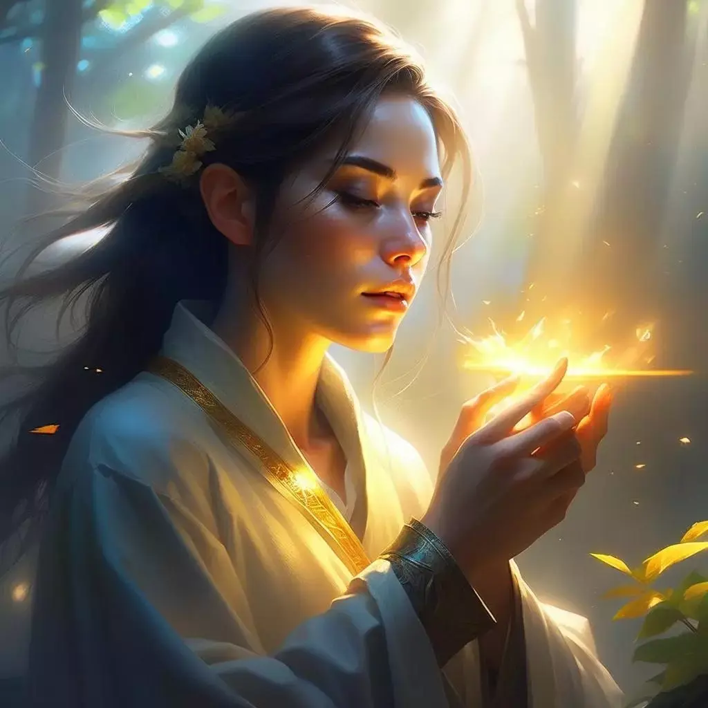 Здесь уже что-то получше. Девушку вполне можно счесть за саму Кэти, которая в руках сосредоточила магию Света.