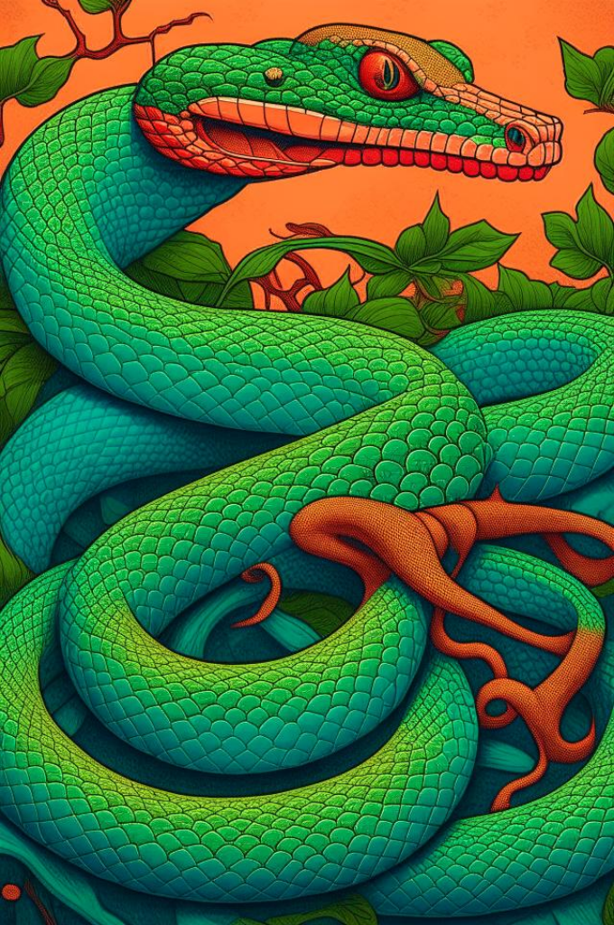 Честно сказать, результат был предсказуемый. Название книги метафорическое, а нейросеть все восприняла буквально. Но в целом -- довольно забавный экземпляр. Писать историю о нем в цикл «Великих змеев» я, конечно же, не буду