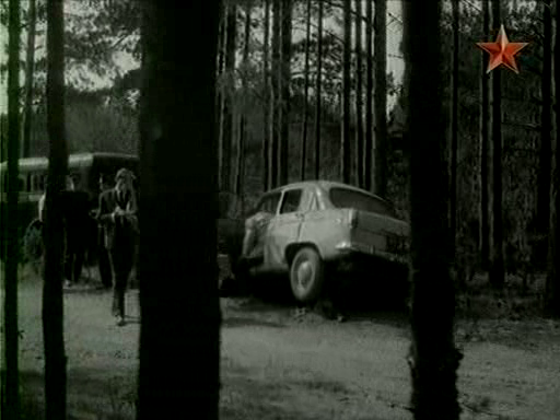 Пострадавший "Москвич" в обычном для того времени кузове -425: