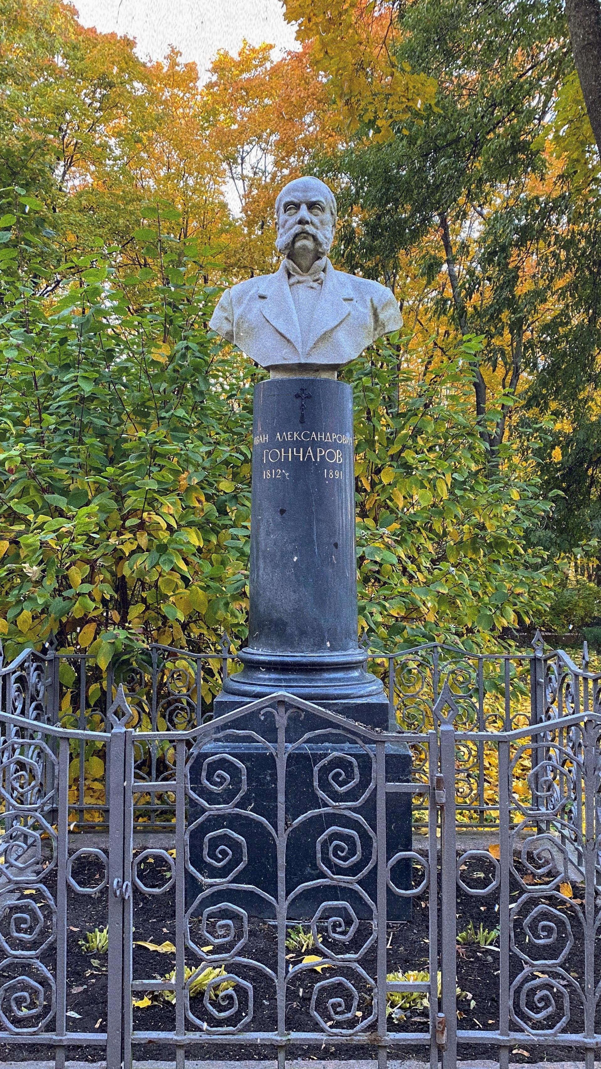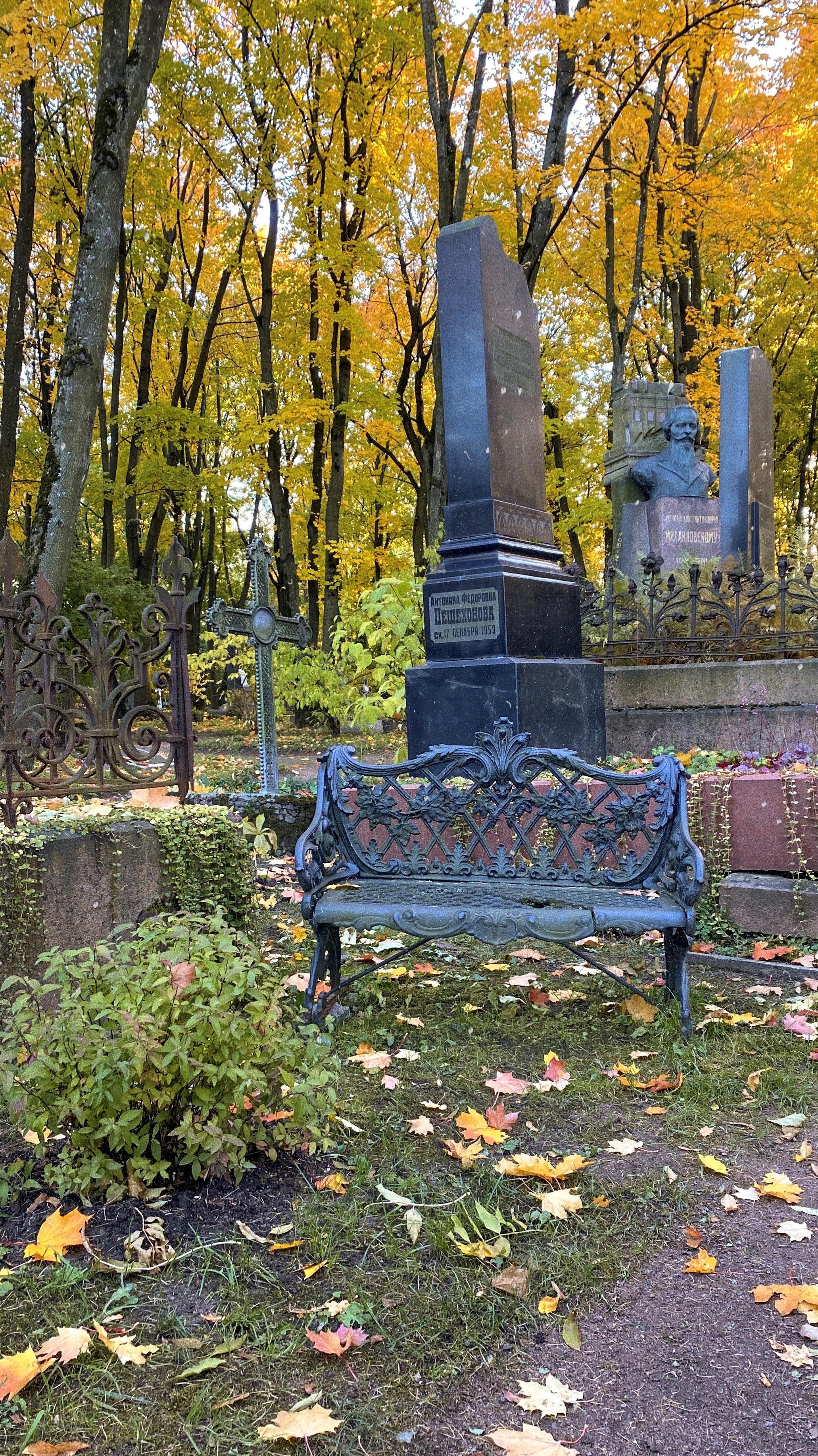 Чтобы ступить на землю мёртвых, нужно было преодолеть местный Стикс: через час я уже шёл по набережной Волковки и искал мост. В голове крутилась мысль: даже покойники не ездят на погост одни. За рекой — кладбище для простолюдинов: напирающие друг на друга надгробия, могилы впритык. Писатели лежат чуть дальше, за забором — в вип-зоне для творцов, учёных и актёров.