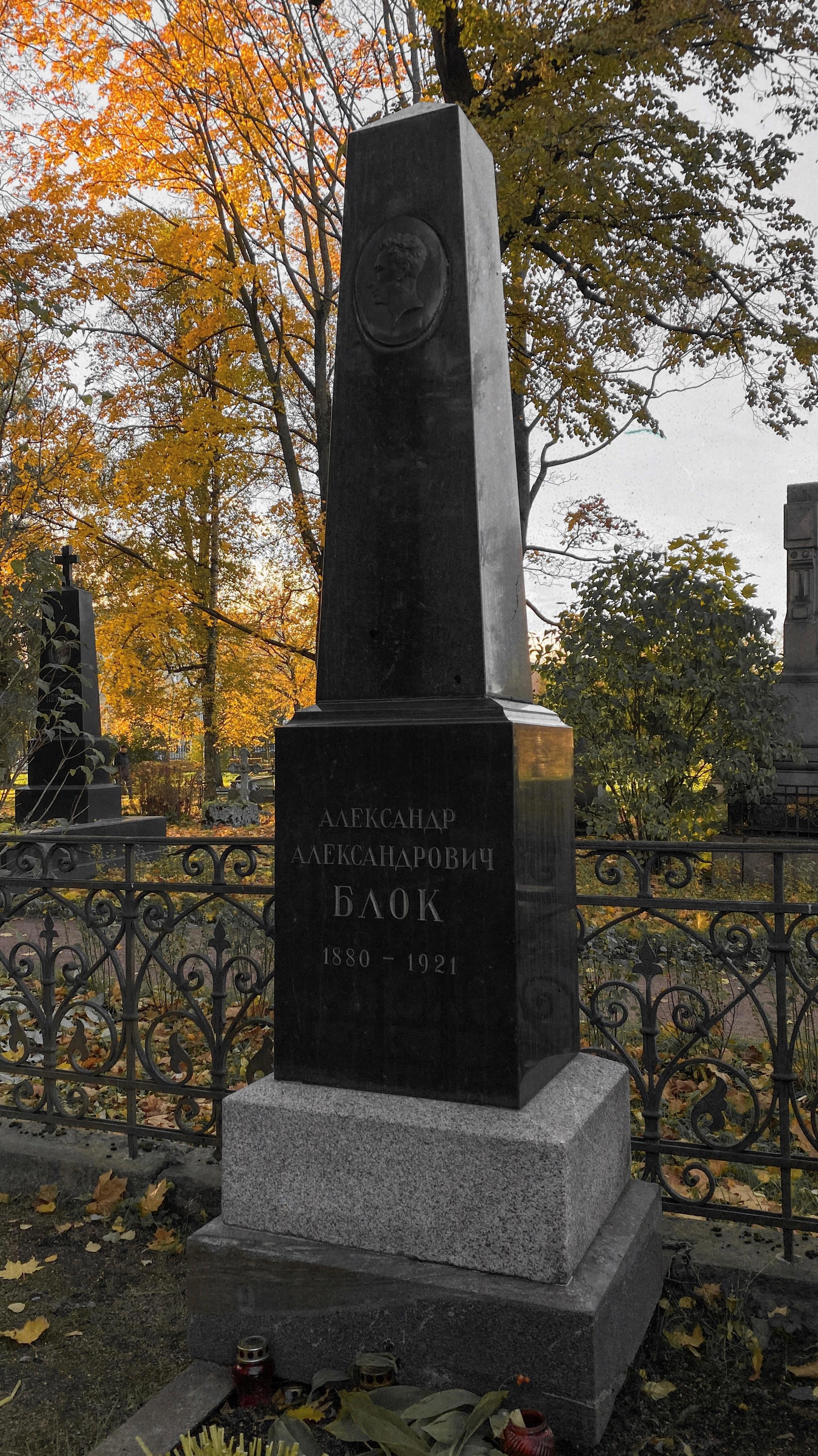 Изначально Блока похоронили на Смоленском кладбище. Потом решили переселить на Литераторские мостки. Рабочие раскопали место погребения, однако решили сильно не париться и достали только череп. Привезли на Волковское, а затем бросили его в яму, поверх костей какого-то барона.