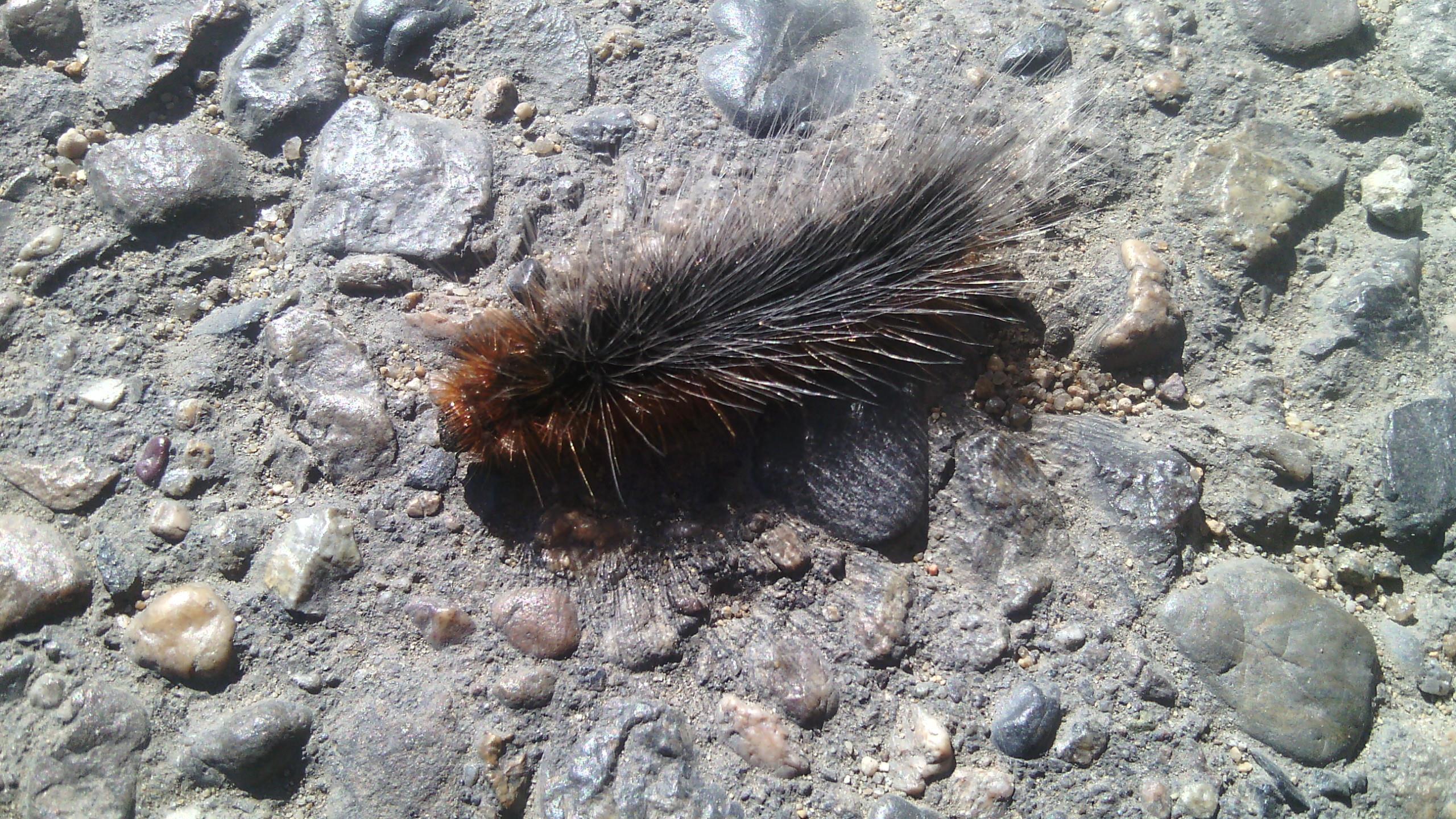Первым делом, вот. Это, с позволения сказать, чудо я щёлкнул недавно. Второе насекомое за начавшееся лето, но зато какое. Прелесть же, хоть и неприглядная. Если честно, то интересно - а какая бабочка получится из гусеницы-дикобраза?