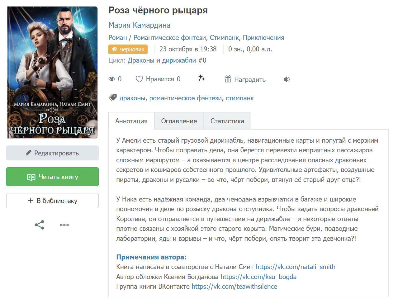 Автор: Мария КамардинаКнига залита на сайт и ждёт начала публикации. Осталось меньше недели
