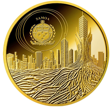 Самоа. Золото в качестве пруф, 1/4 унция, тираж 150 шт. Есть еще такая же в серебре, там пруф-лайк, тираж 2023 штуки. PS Узнал заодно, как называется валюта Самоа. Тала.