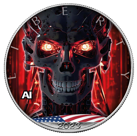 Терминатор и Кибер-женщина. Все серебро, 1 унция, тираж 2500 каждая, качество пруф. В Штатах чеканят.