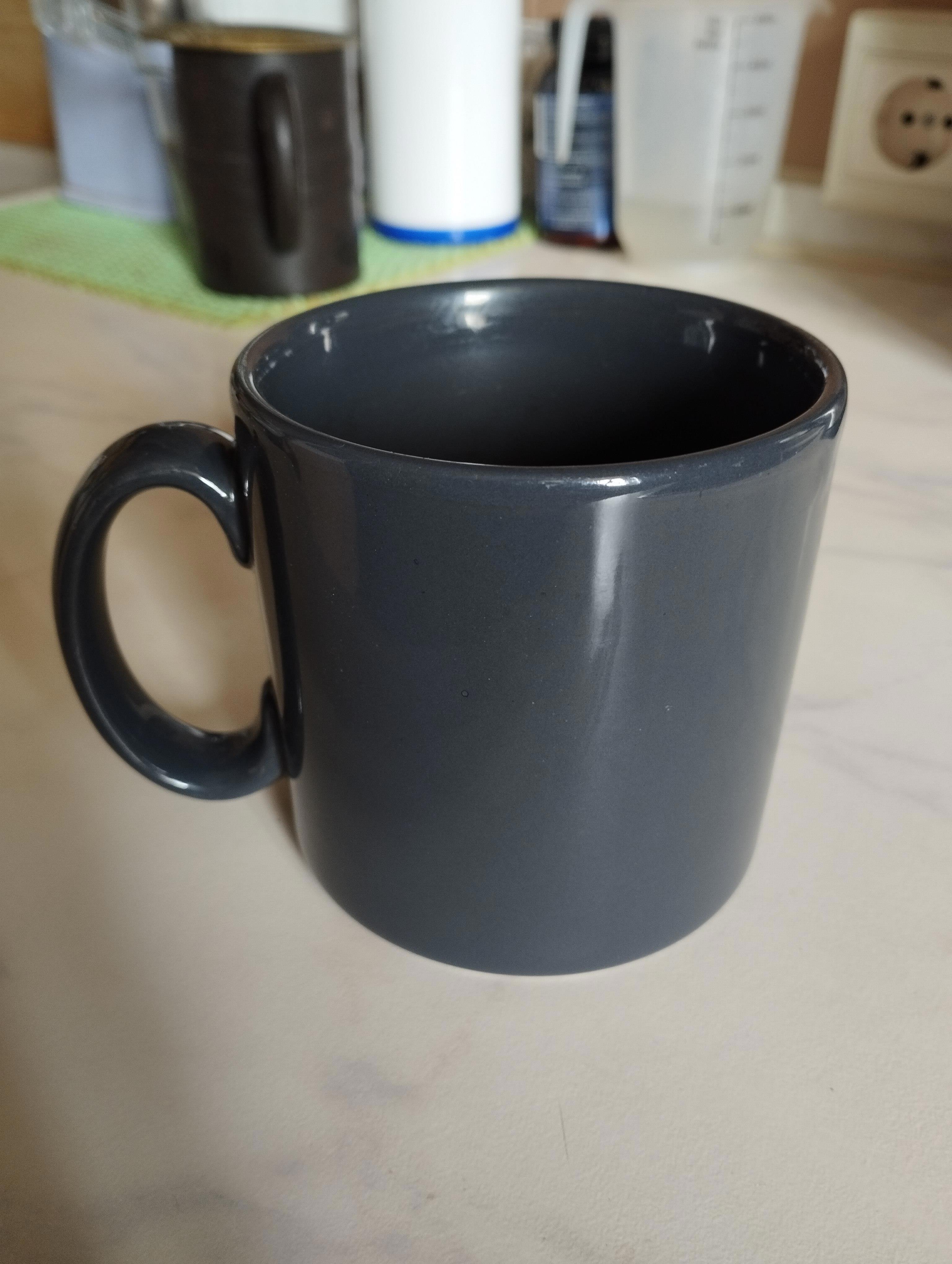 Кружка до сих пор со мной, вот, стоит справа и дымится чаем. В доме есть еще рабочий фен (через год отметим его полвека) и дедовские карманные часы «Мозер» в исправном состоянии, но кружка — самая старая из моих личных вещей.