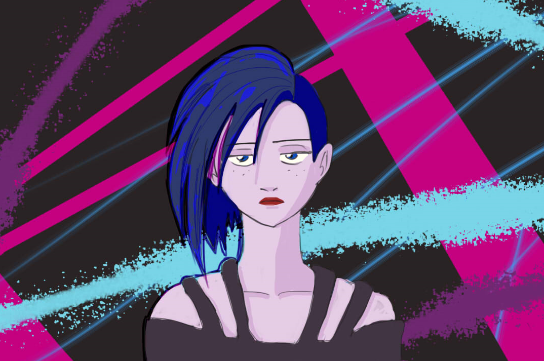 Когда рисовала взрослую Лали, вдруг сообразила, что а прическа-то у нее похожа на прическу Вай из "Аркейна", хотя волосы синие (результат неудачного окрашивания, а вот не надо подозрительные краски на искусственно осветленные наносить!).