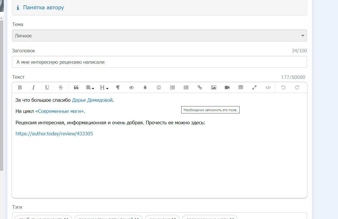 ), упоминания, о том, что ему написали рецензию или нарисовали иллюстрацию (тоже со свистом улетают в самопиар, только и видели).