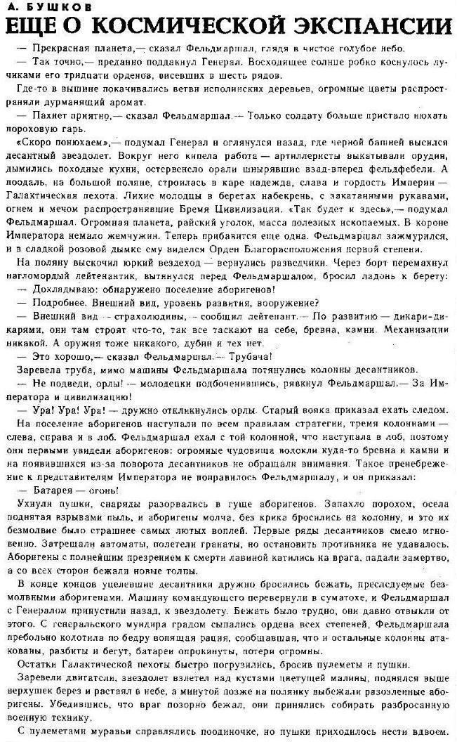 В старой подшивке журнала "Вокруг света" начала 80-х откопал раннюю фантастическую миниатюру А.Бушкова.