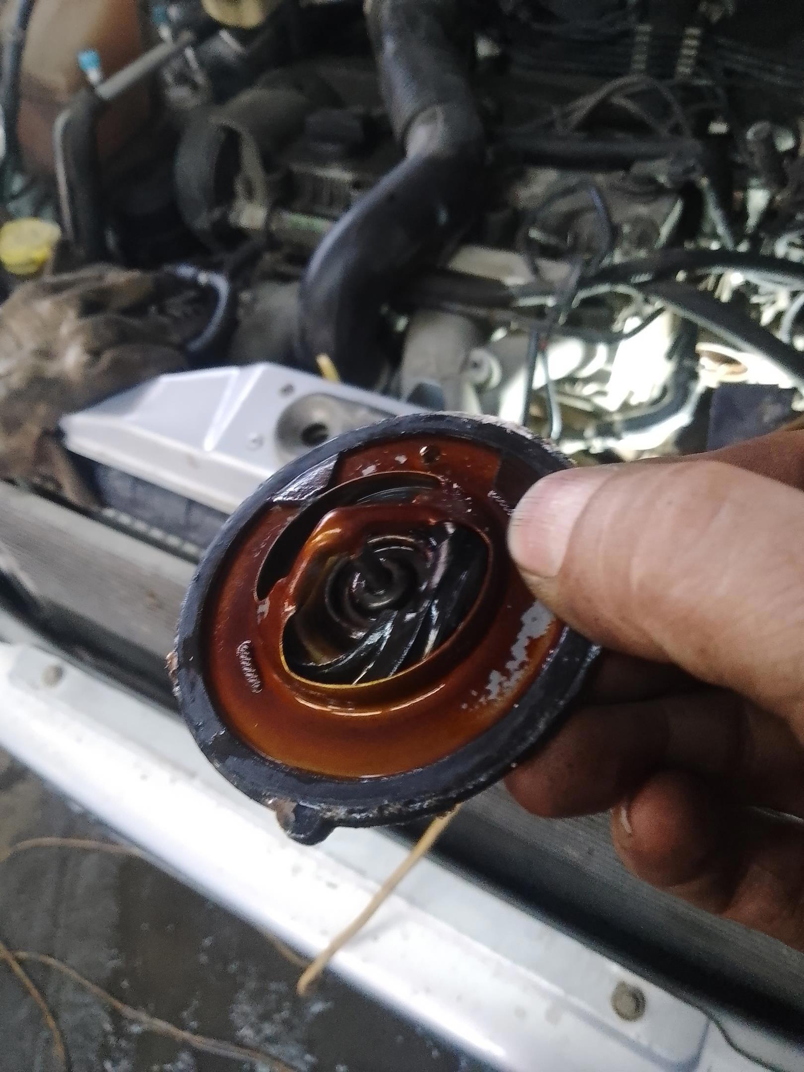 Уух! Термостат с завернутой резинкой, он не закрывался. Как определить его? Машина долго прогревается. И когда температура начала расти, верхний и нижний патрубок радиатора примерно одинаково теплые.