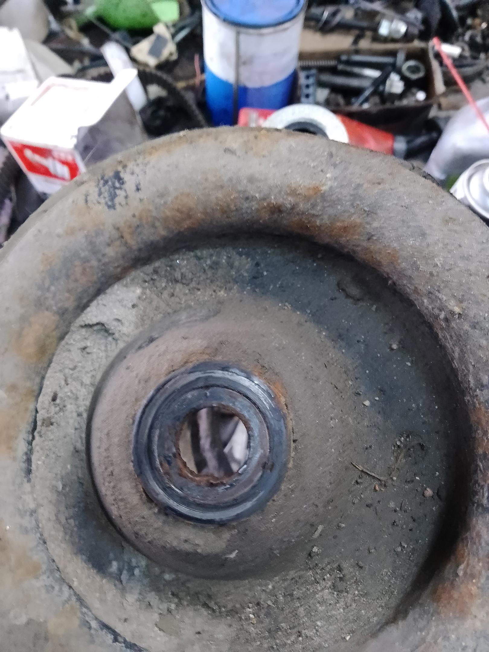 А это - верхняя чашка стойки Шкода Фабия (емнип), которой занимался коллега. Он большую часть дня пытался вынуть стойку, а сложность в том, что болты, крепящие её, вворачиваются в закладные, которые любят проворачиваться. Ага. Подарок гитлера!