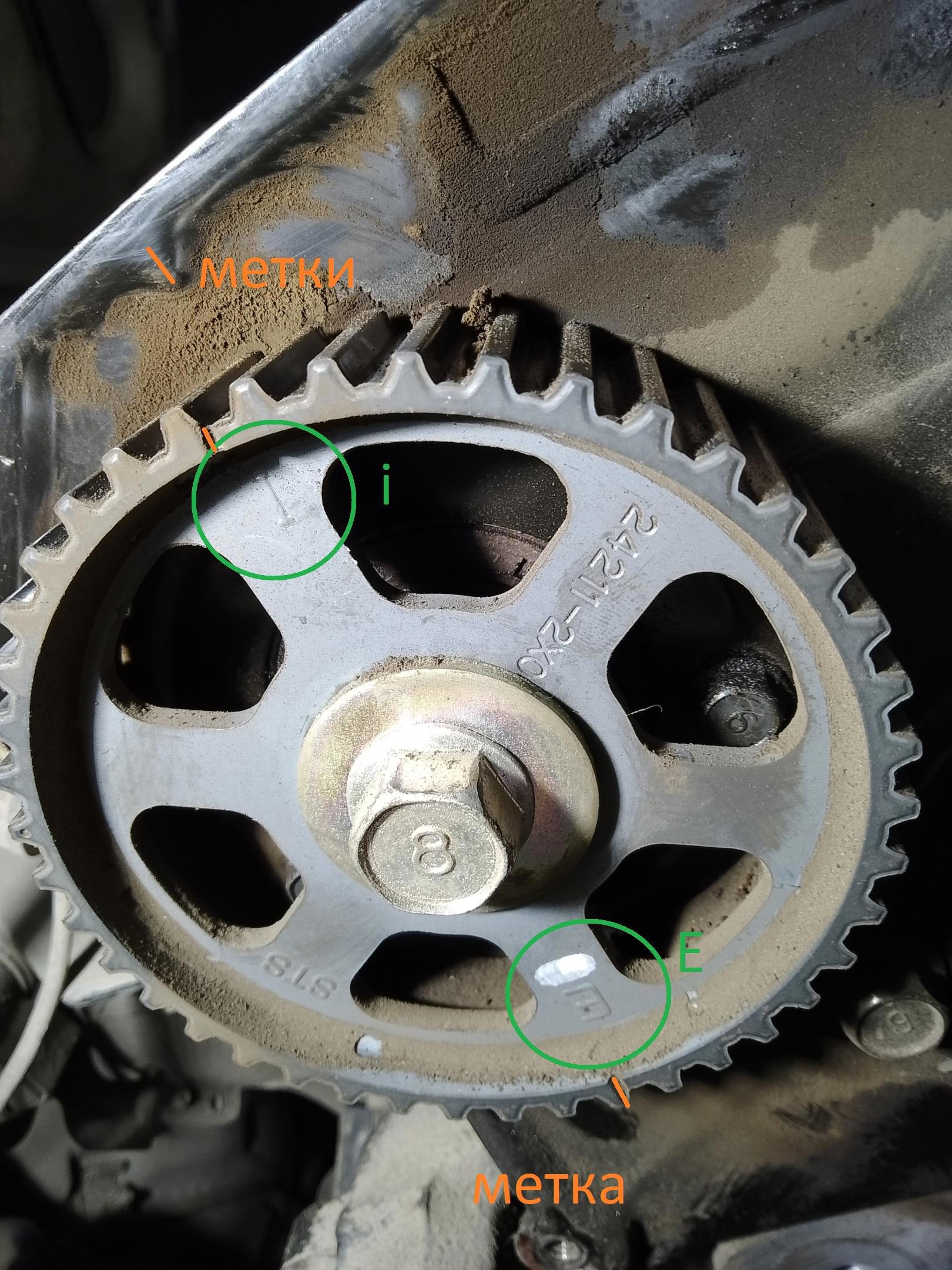 Шестерня распредвала имеет две метки, и две буквы, I и E, она - универсальная, ставится как на впуск, так и на выпуск, но с разворотом в 180 градусов.