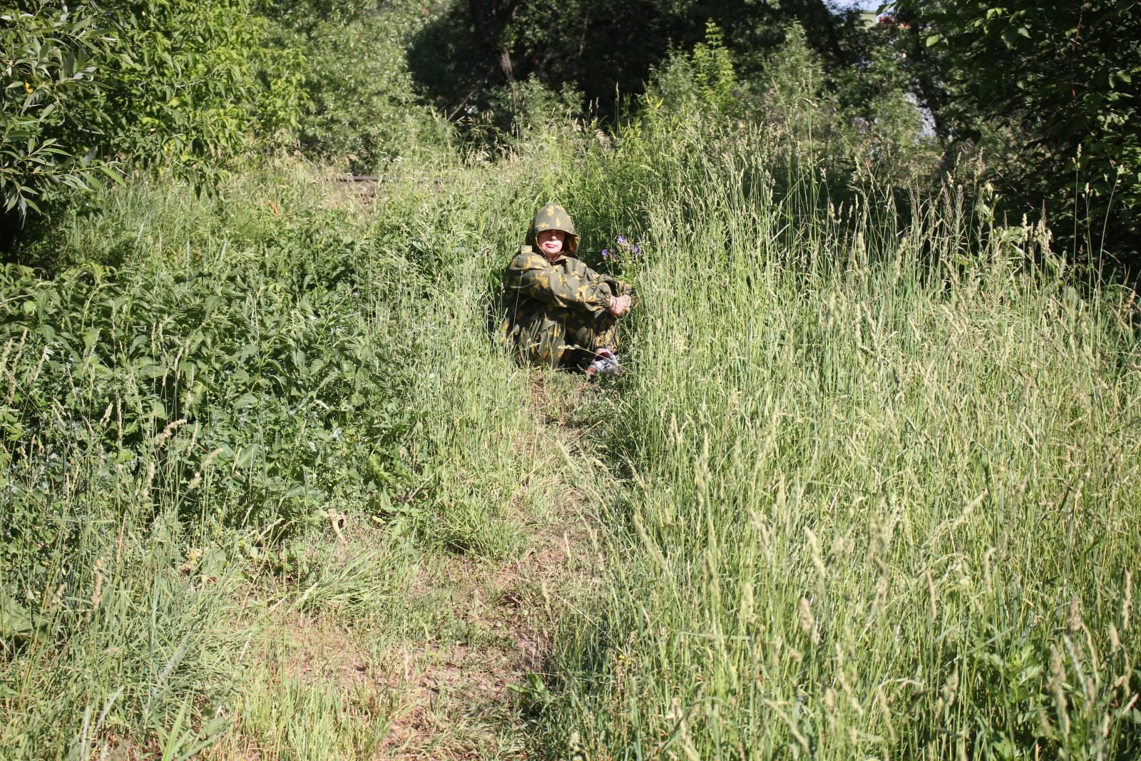 В процессе написания стали сказываться побочные эффекты творчества. Если с депрессняком удалось относительно справиться с помощью пива, то что делать с неудержимым желанием материться по любому поводу - ума не приложу. И пиво тут только усугубляет) И бета-ридеру тоже досталось. Во-первых, текст она всё же прочитала - не отрываясь и вместо своих любимых "Что, где, когда". А во-вторых, настолько это дело её торкнуло, что пошла и купила себе камуфло, и всё воскресенье развлекалась тем, что, обрядившись в маскхалат, ныкалась по кустам с криками: "Посмотри, меня видно?" Если не верите, то вот: