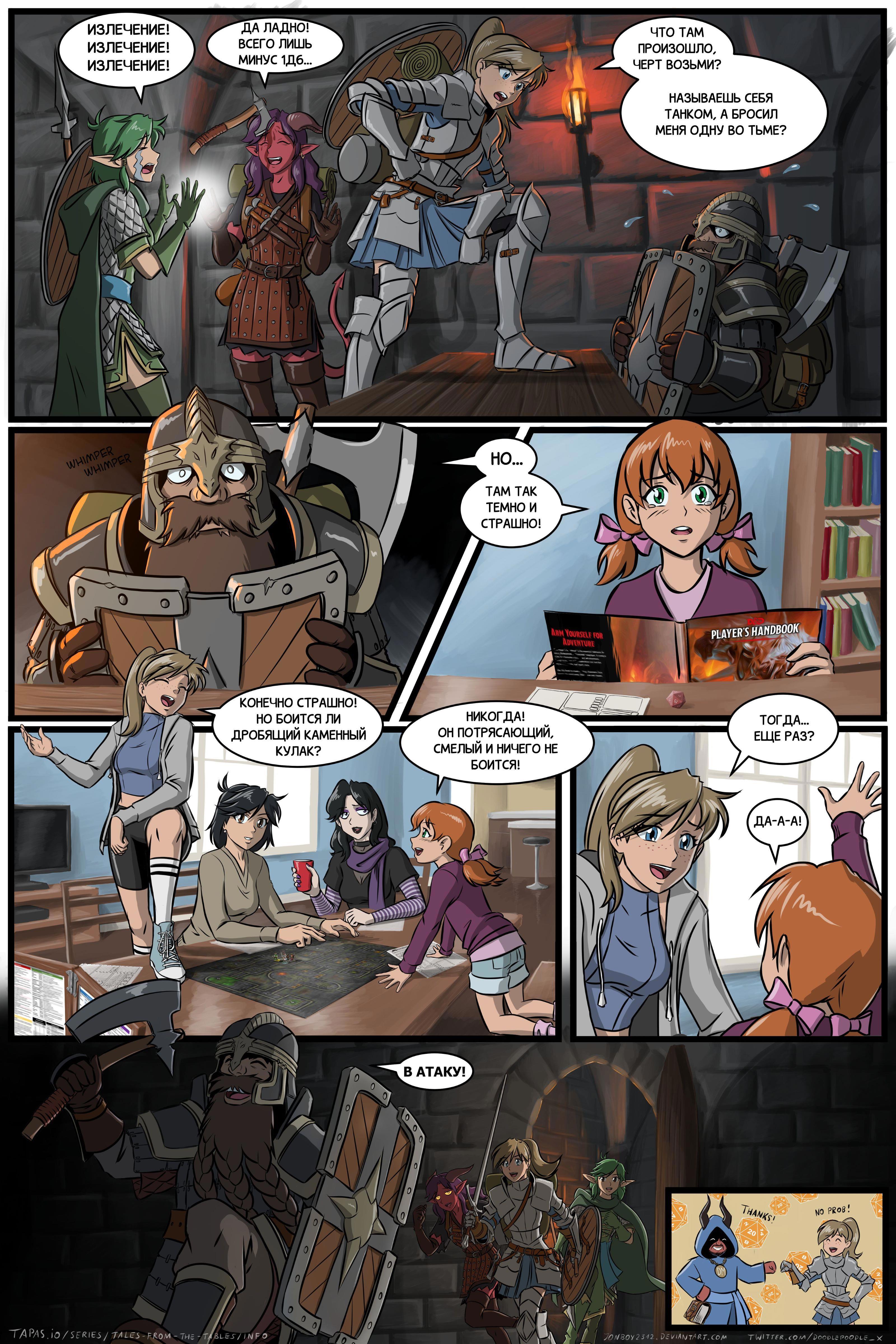 Автор: Руслан БирюшевПродолжаем с Олегом Борисовым перевод комикса от DoodlePoodle о приключениях паладина Ангелы таки Хоторн (решили утвердить такой вариант перевода её фамилии, автор в курсе) и её соратников в мире Подземелий и Драконов. Ну и да, "настоящая" Ангела, как и прочие игроки, сидящие за столом вместе с ДМ-ом - также полноценные персонажи этой истории. Сегодня у нас выпуски с шестого по десятый.