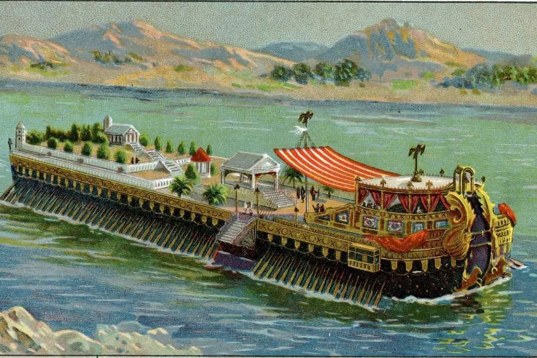 На одном из кораблей находился храм Дианы с мраморными колоннами, мозаичными полами и зигзагами из позолоченной бронзы.