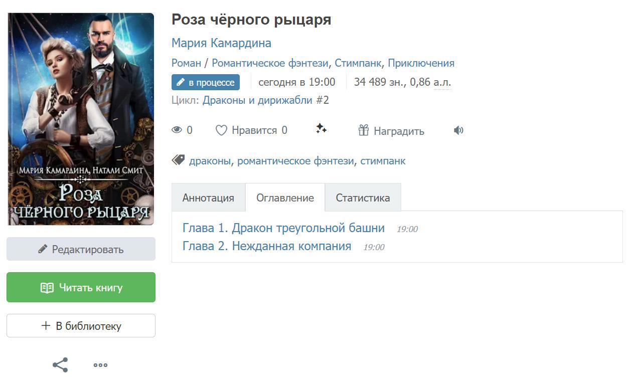 Автор: Мария КамардинаИтак, свершилось — публикация романа «Роза чёрного рыцаря» началась! Напомню, что он входит в цикл «Драконы и дирижабли» и является логическим продолжением романа «Леди и вор», из которого, как помнят прочитавшие, в финале сбежал один из злодеев. Вот в новом романе новые герои и будут его, нехорошего такого, ловить, а читателям предстоит ужаснуться всей глубине его нехорошести