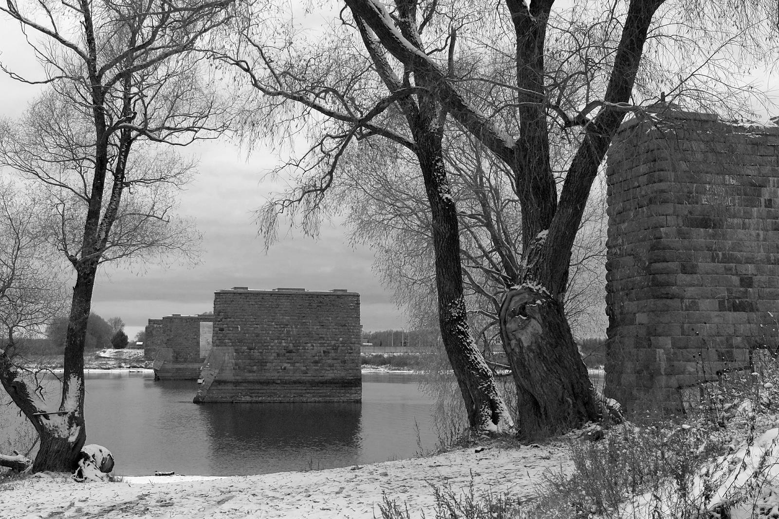 Довольно известное место - недостроенный ещё до первой мировой войны мост, сейчас - излюбленное место рыбаков (да, даже в эту погоду):