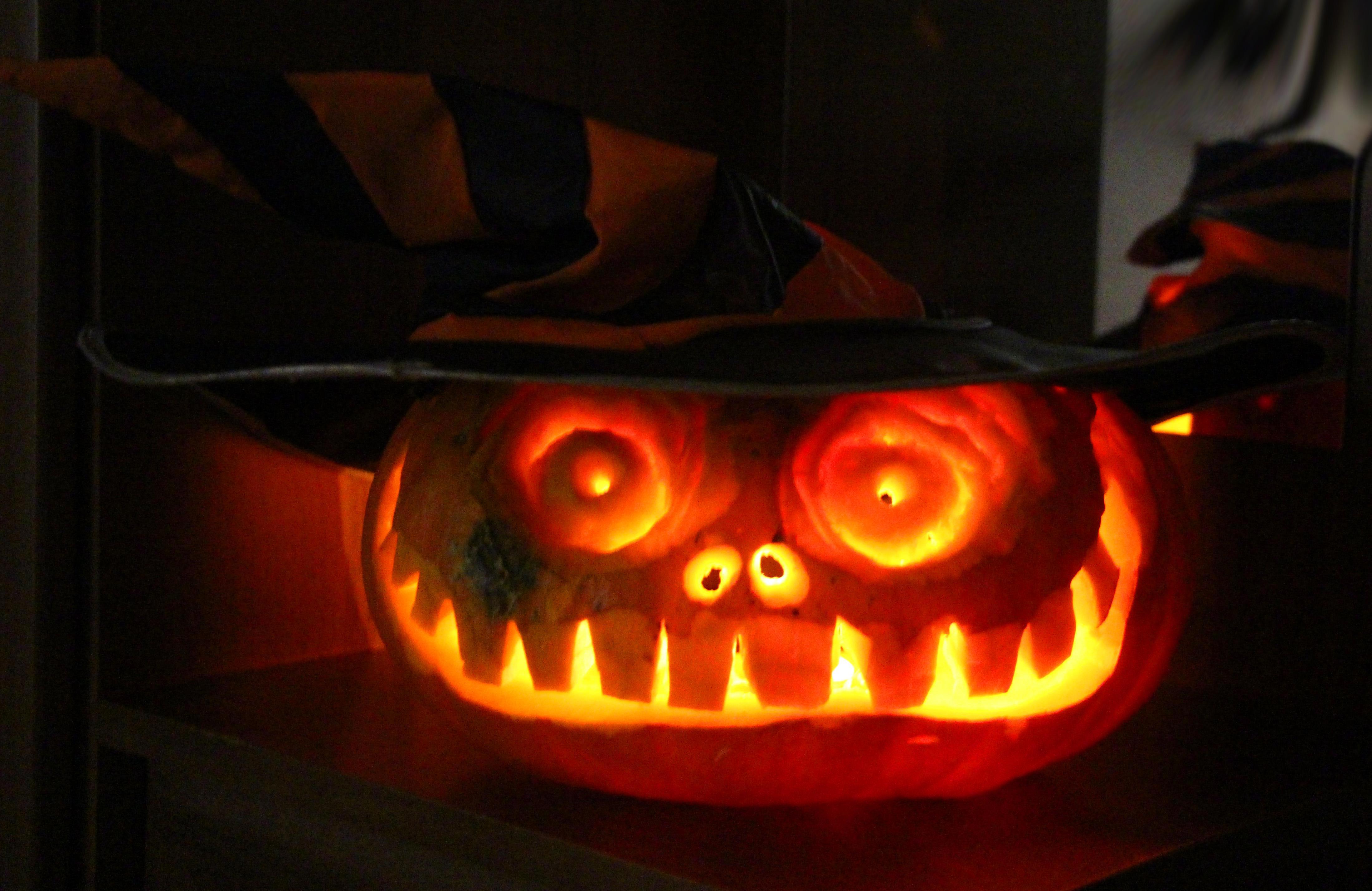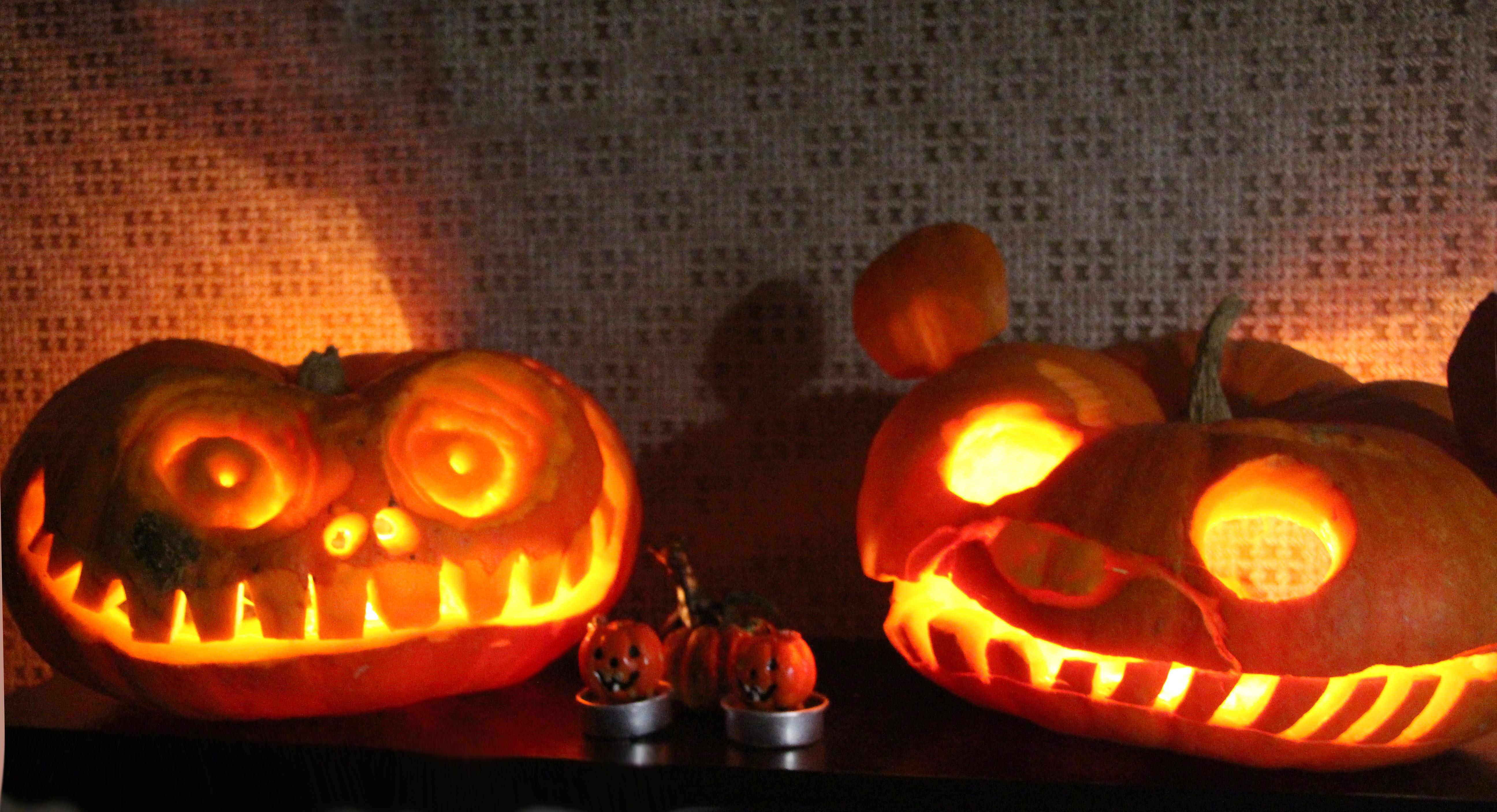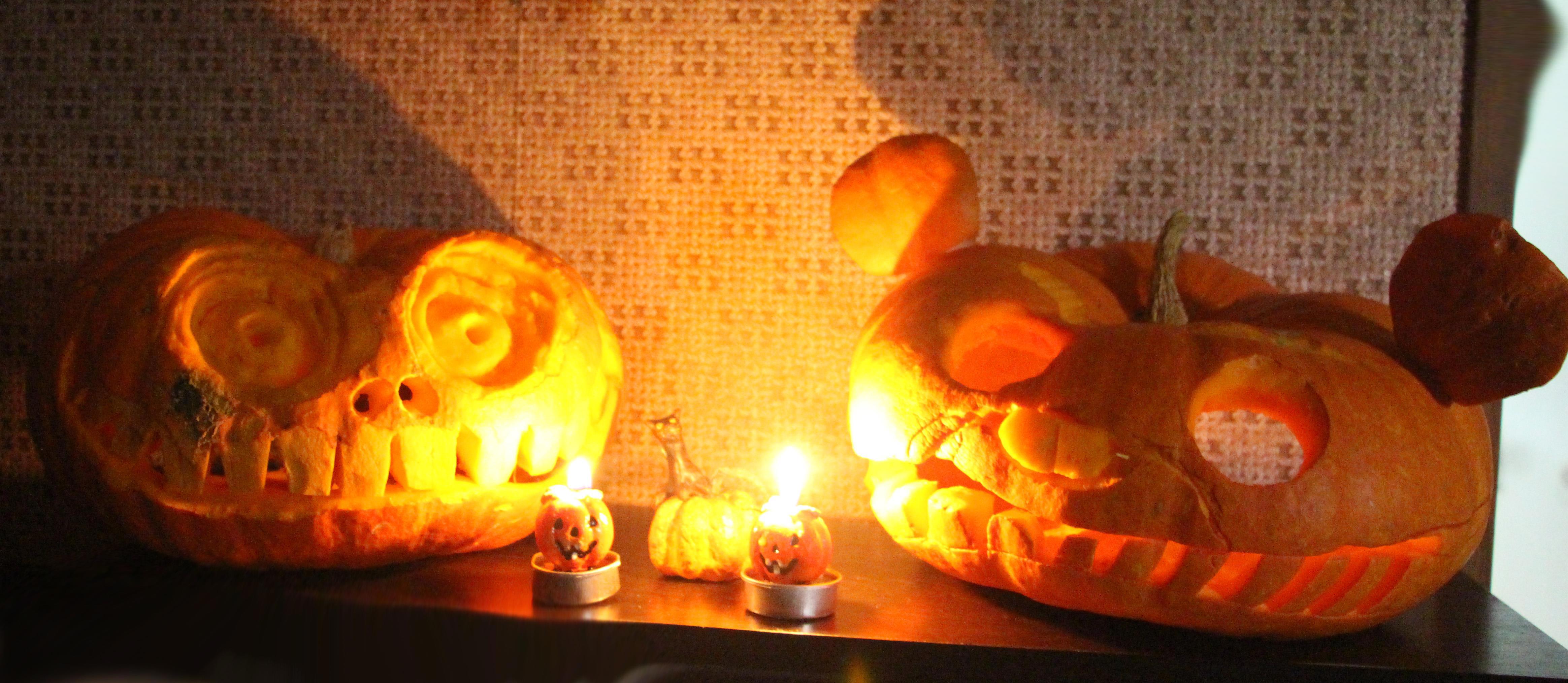 Мы в семье отмечаем этот праздник уже несколько лет подряд. У нас всегда хороший урожай тыквы. И мы не только готовим из нее разные блюда, но и делаем своеобразный декор для дома к празднику. Сначала только я вырезала в тыкве глазки и рот, в различных вариантах. Мой старший сын был всегда рядом и по возможности помогал. Но в этом году, я смогла доверить нож и ему! Все таки 11 лет!