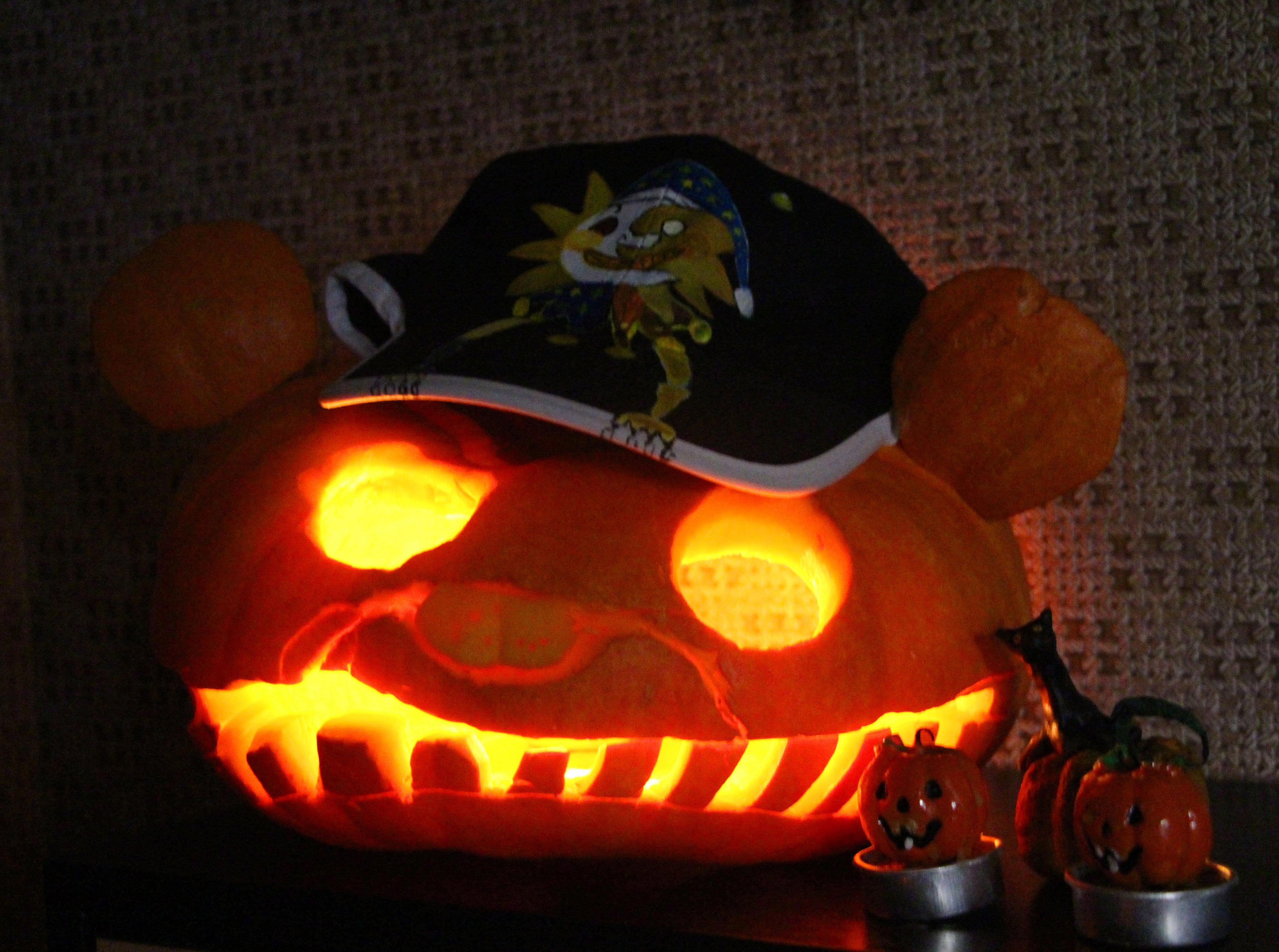 У сына своя фантазия и он решил сделать тыкву в виде медведя.