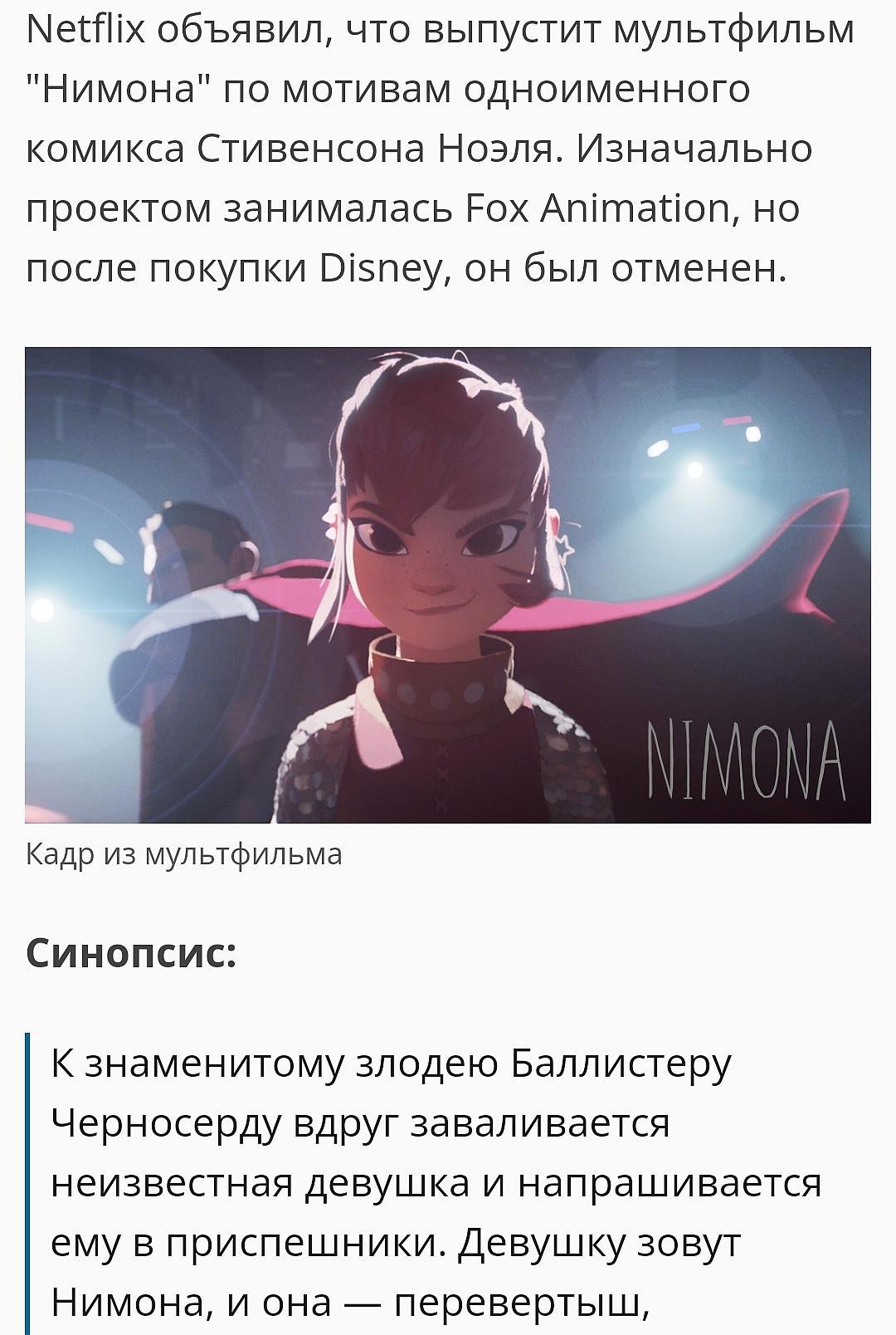 Сегодня, буквально 20 минут назад, я посмотрела этот мультик. Понравился безумно! Нимона - это нечто (мне кажется все мы немного, а кто и много