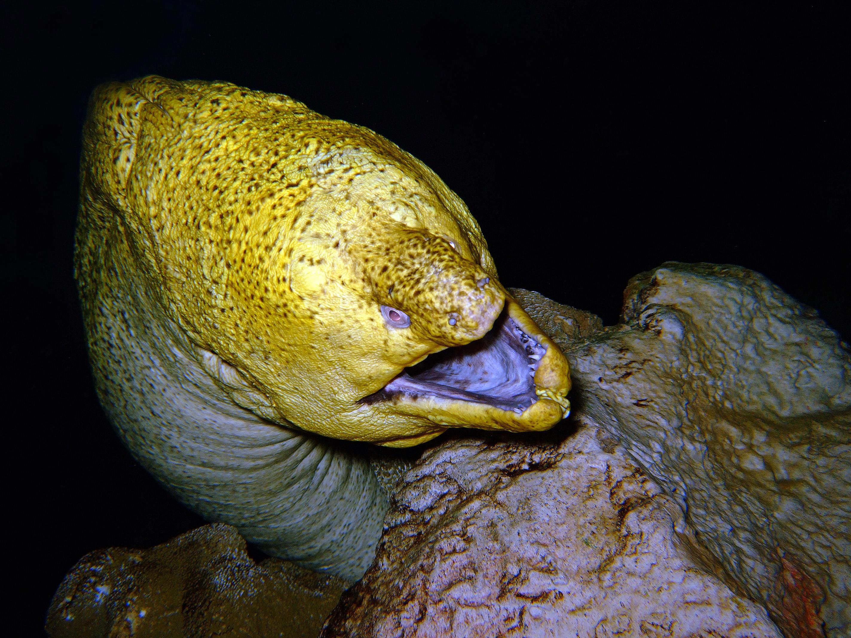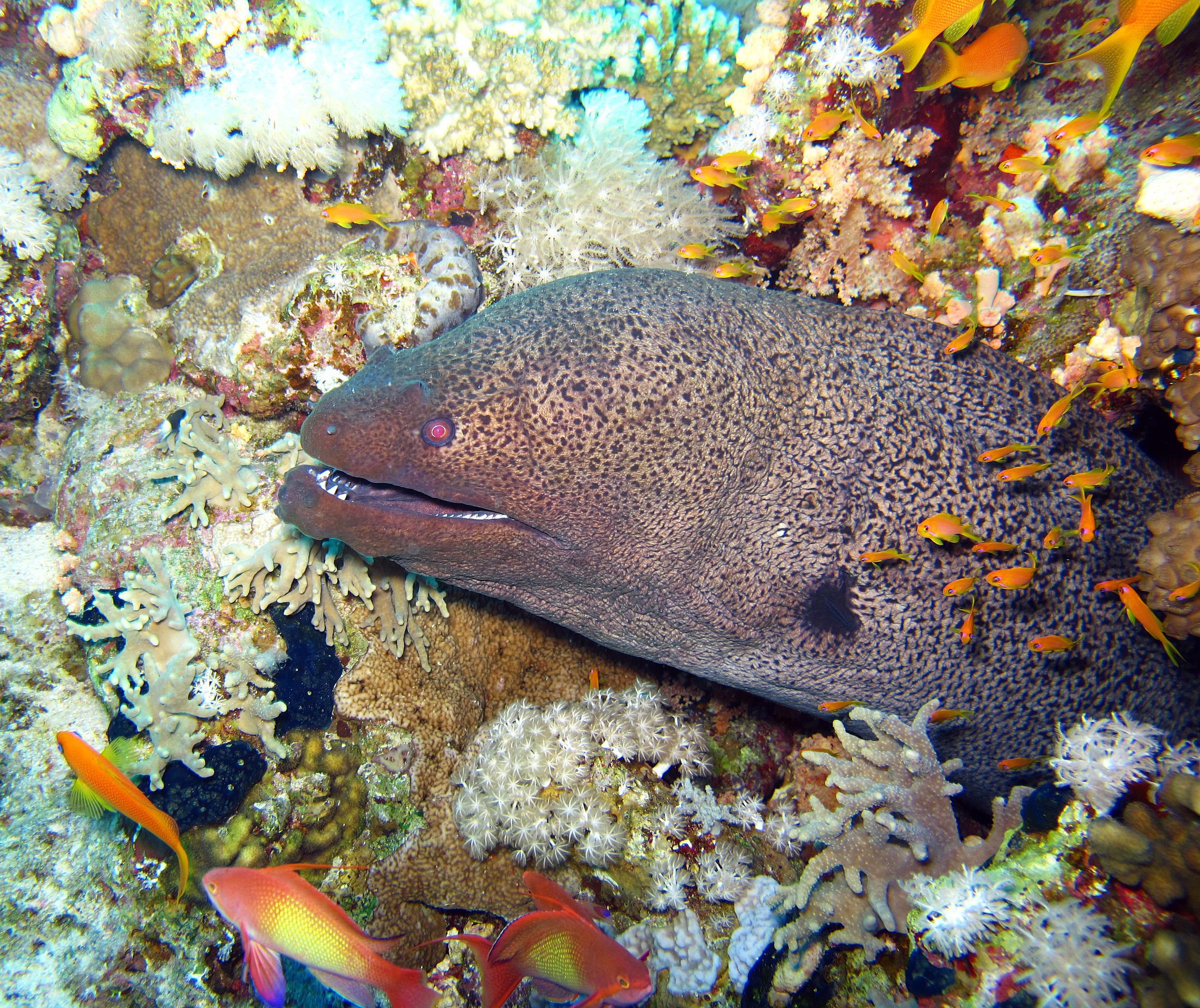 Мурена гигантская. Слабоядовита. Желательно не совать пальцы в пасть и не кушать