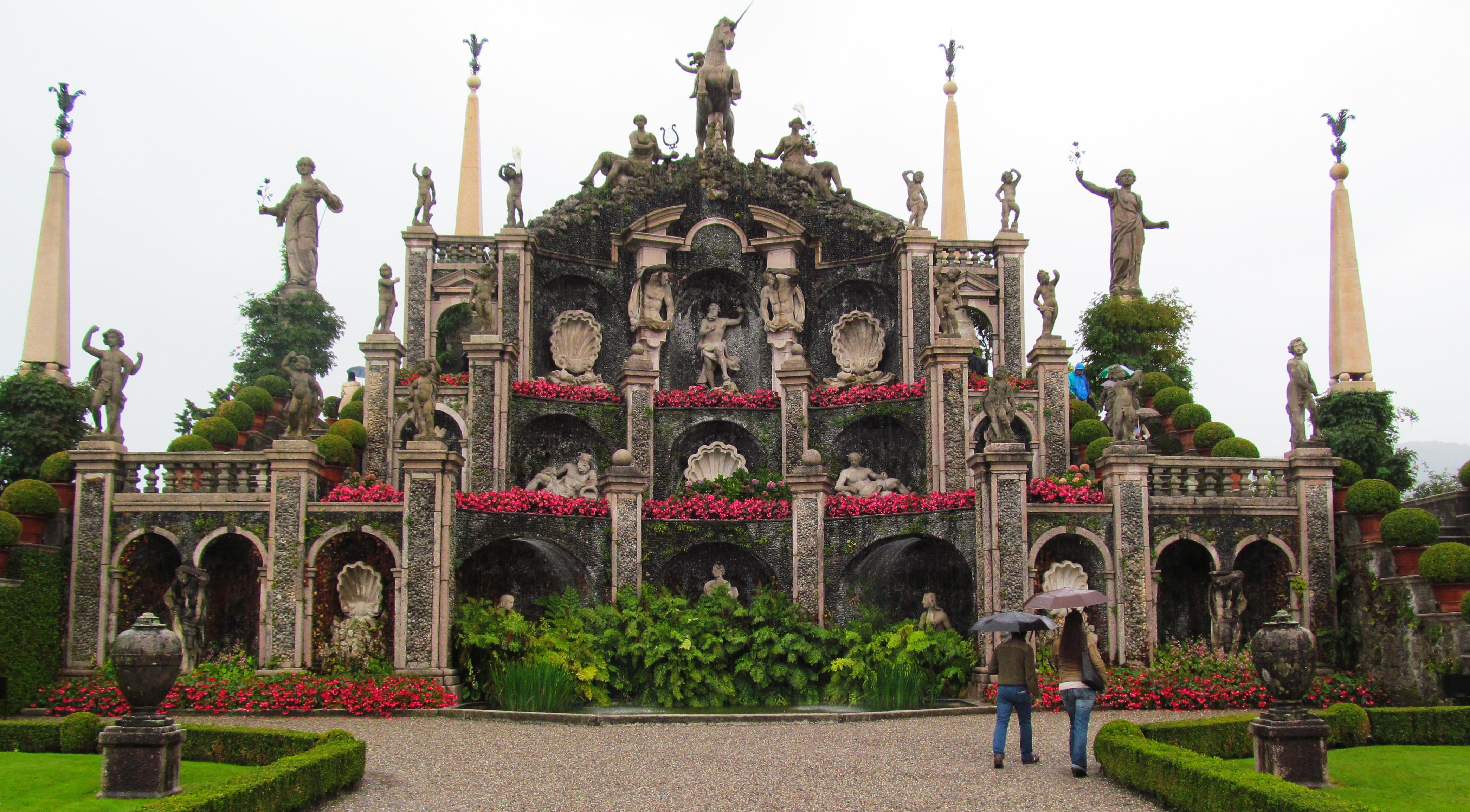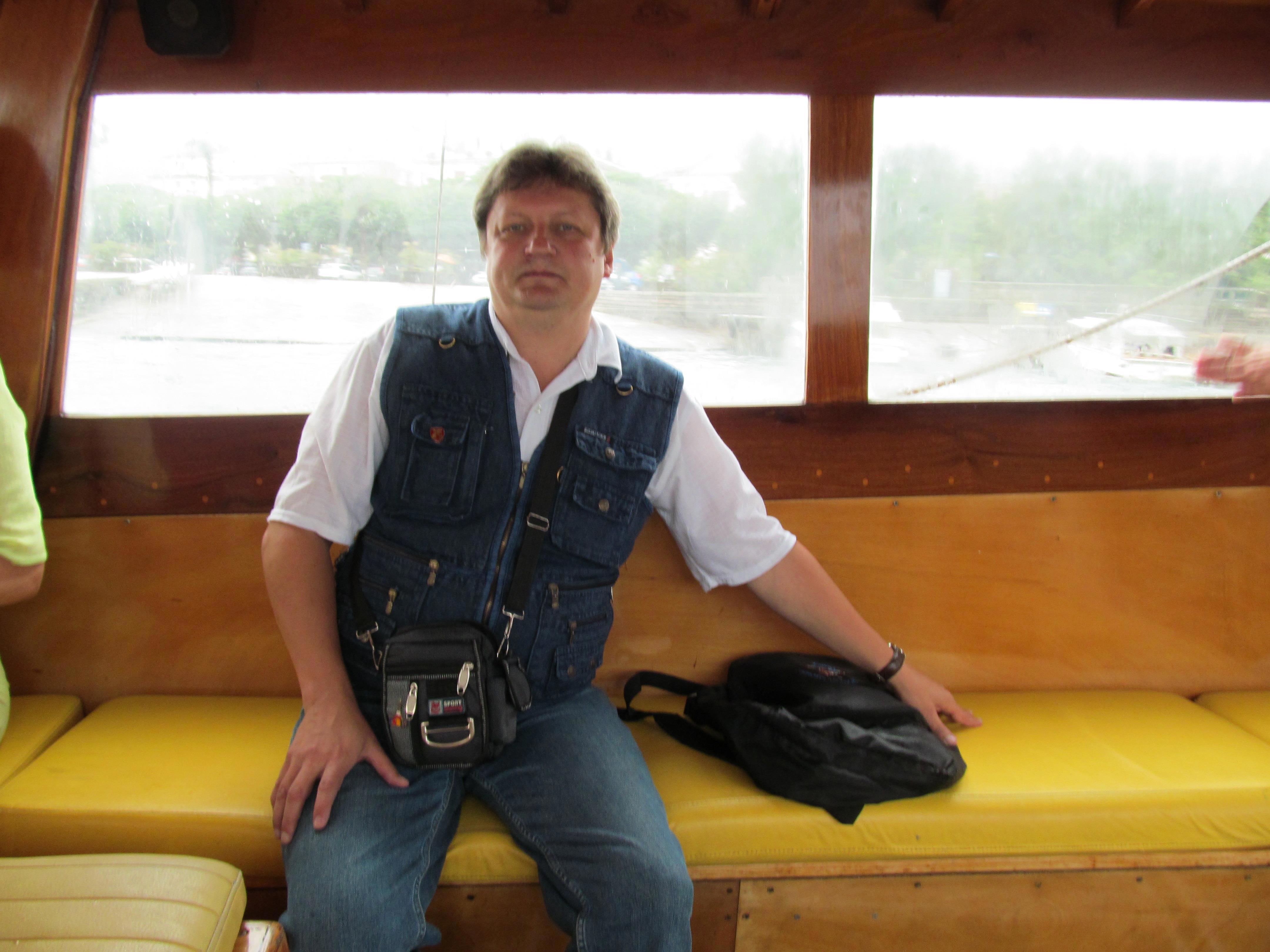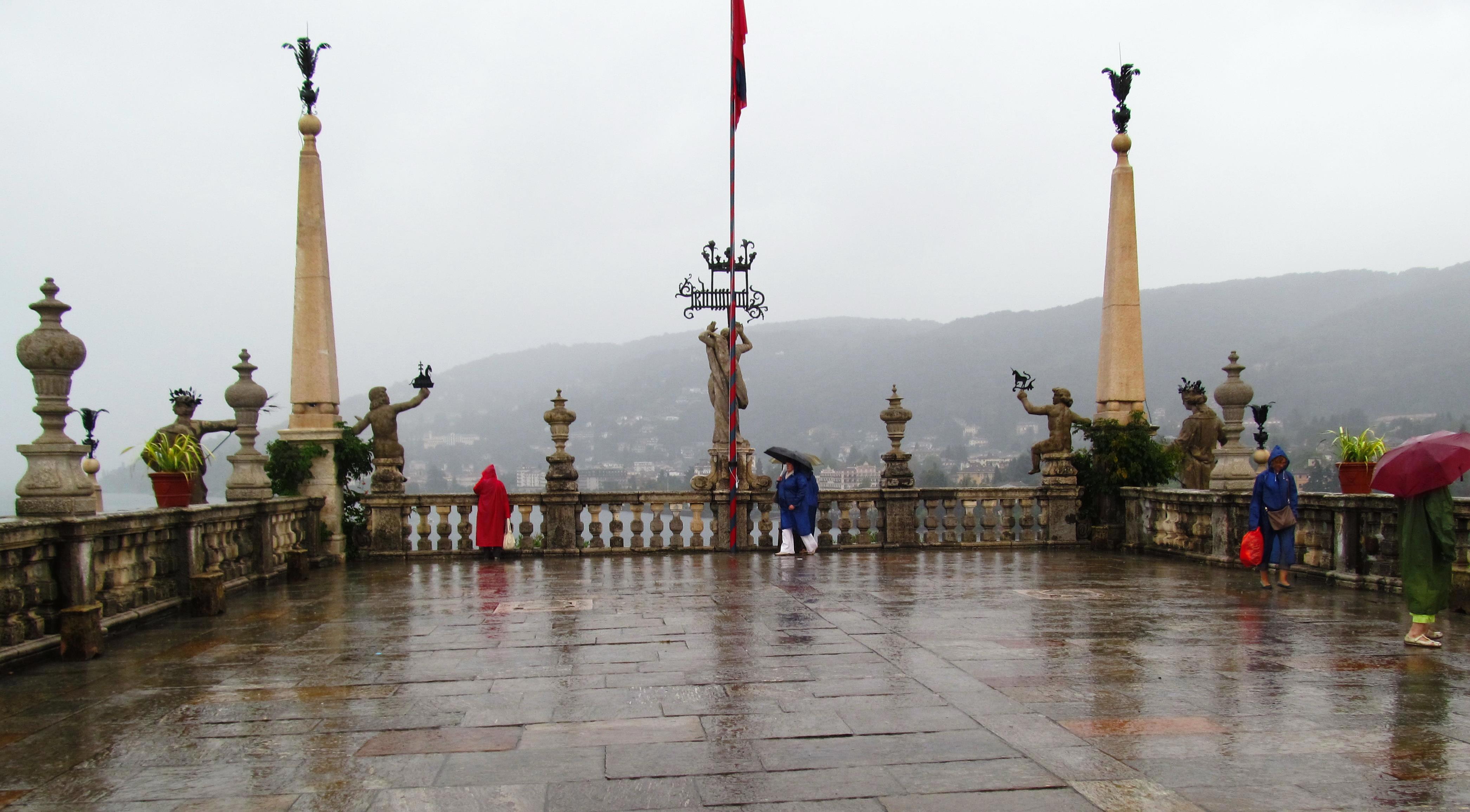 Заказали кораблик – на Бармалеевсике острова – «исолы», если по-итальянски. Или Боромеевские. Как-то так... Туман, дождище… Видно, честно говоря, плоховато… Но, все же кое-что видно – не зря приехали.