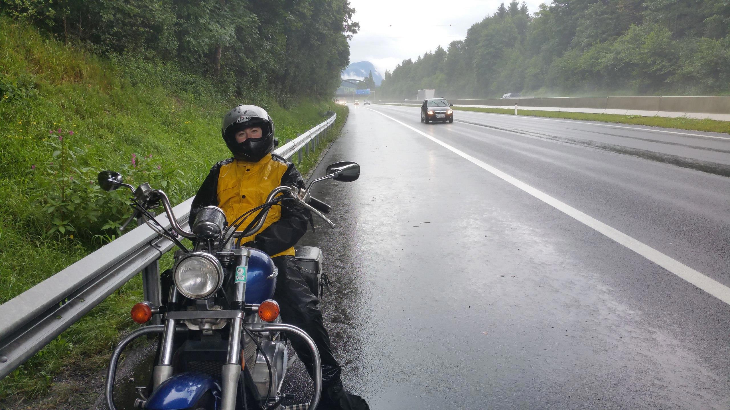 Думаю, не лишним будет обозначить, что и в Италии на скоростных трассах стоять нельзя, кроме специально отведённых мест. Но мотоцикл, естественно, ехать до этого места отказался, молчаливо послав нас на фиг.