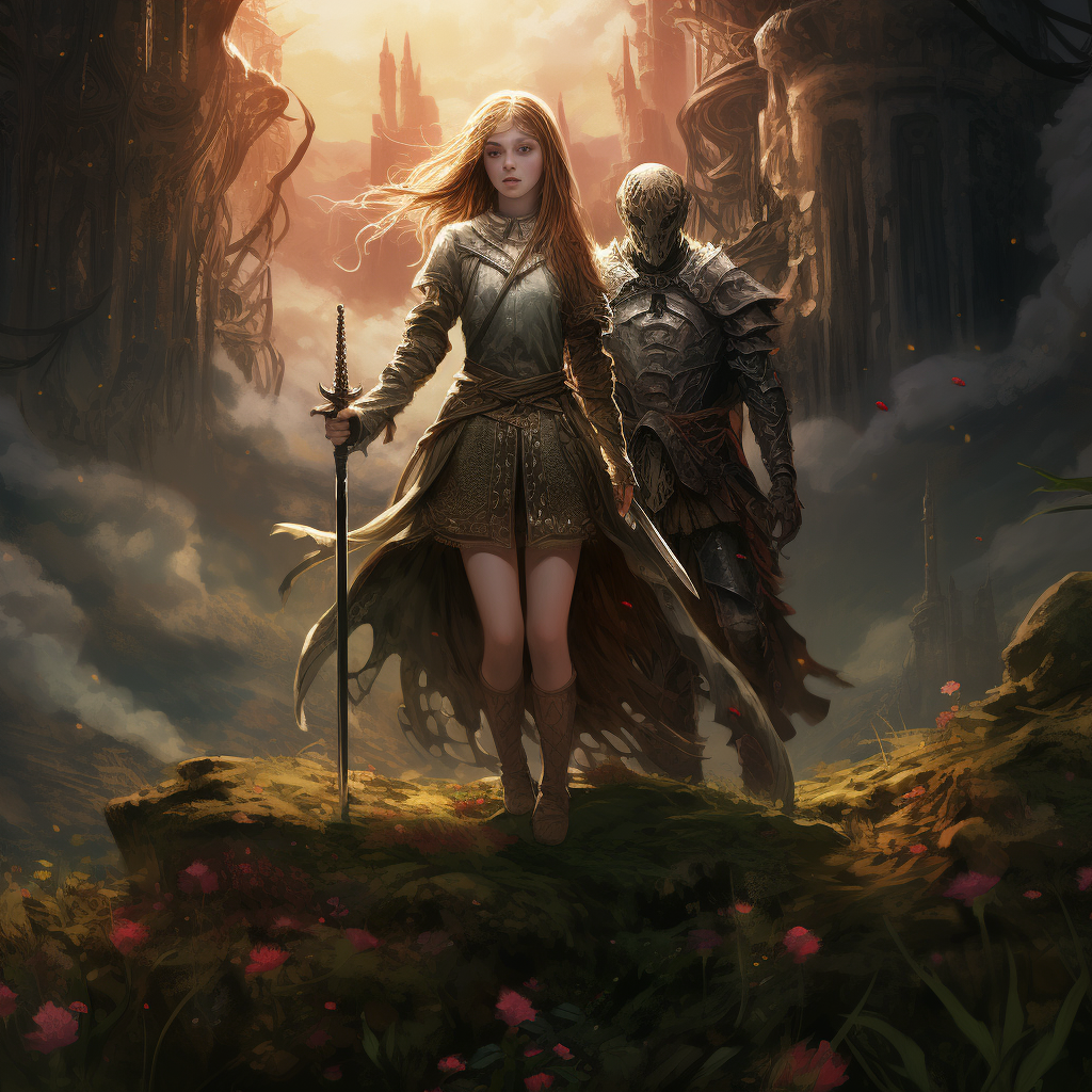 6) Эта так же фаворит, но уж слишком отдаляется от самого текста. Шлема такого рыцарь не носит, да и девочка здесь уже ближе к совершеннолетней, что идет в разрез с возрастом в тексте (13-14 лет)