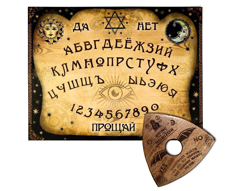 В центре гостиной стоял приземистый журнальный столик черного дерева. На удивление, столик был пуст. Ни вездесущих тыкв, ни вазочек с угощением на нем не было. Единственным предметом на столе была старинная детская игрушка - доска для вызова духов.