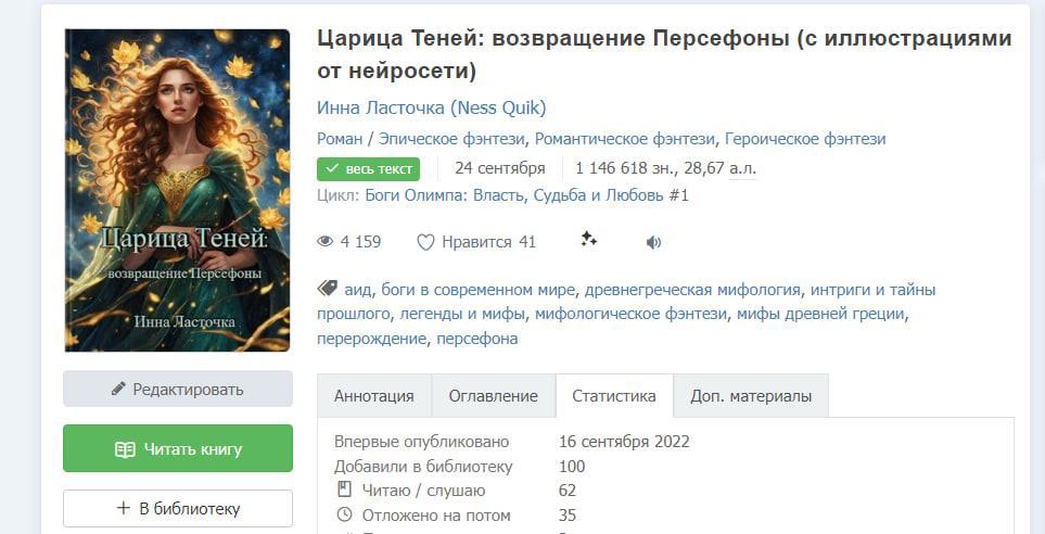 Автор: Инна Ласточка (Ness Quik)У Царицы Теней первая сотня библиотек, а всё из-за вчерашней потрясающей рецензии от Любови Пушкарёвой