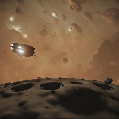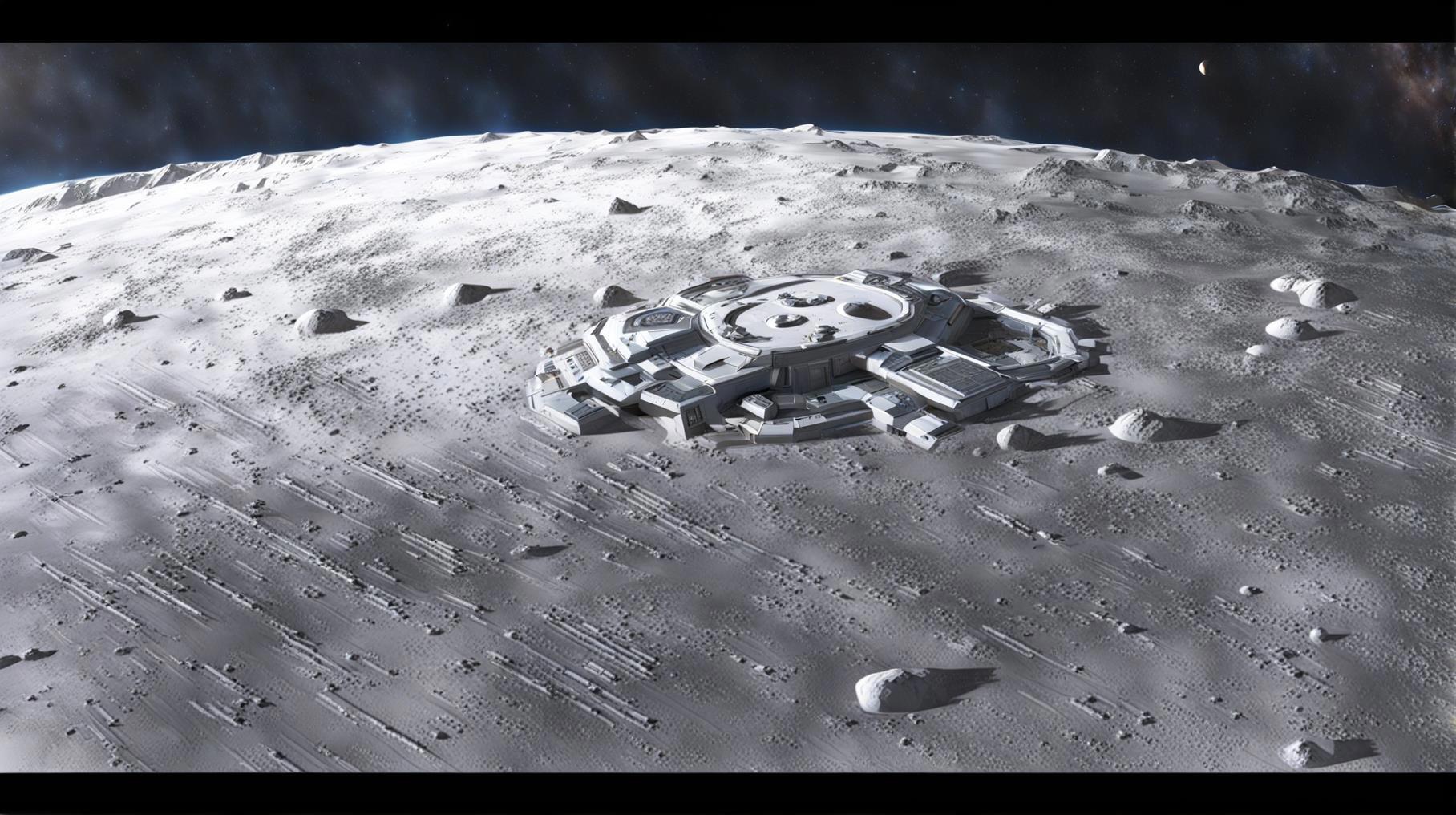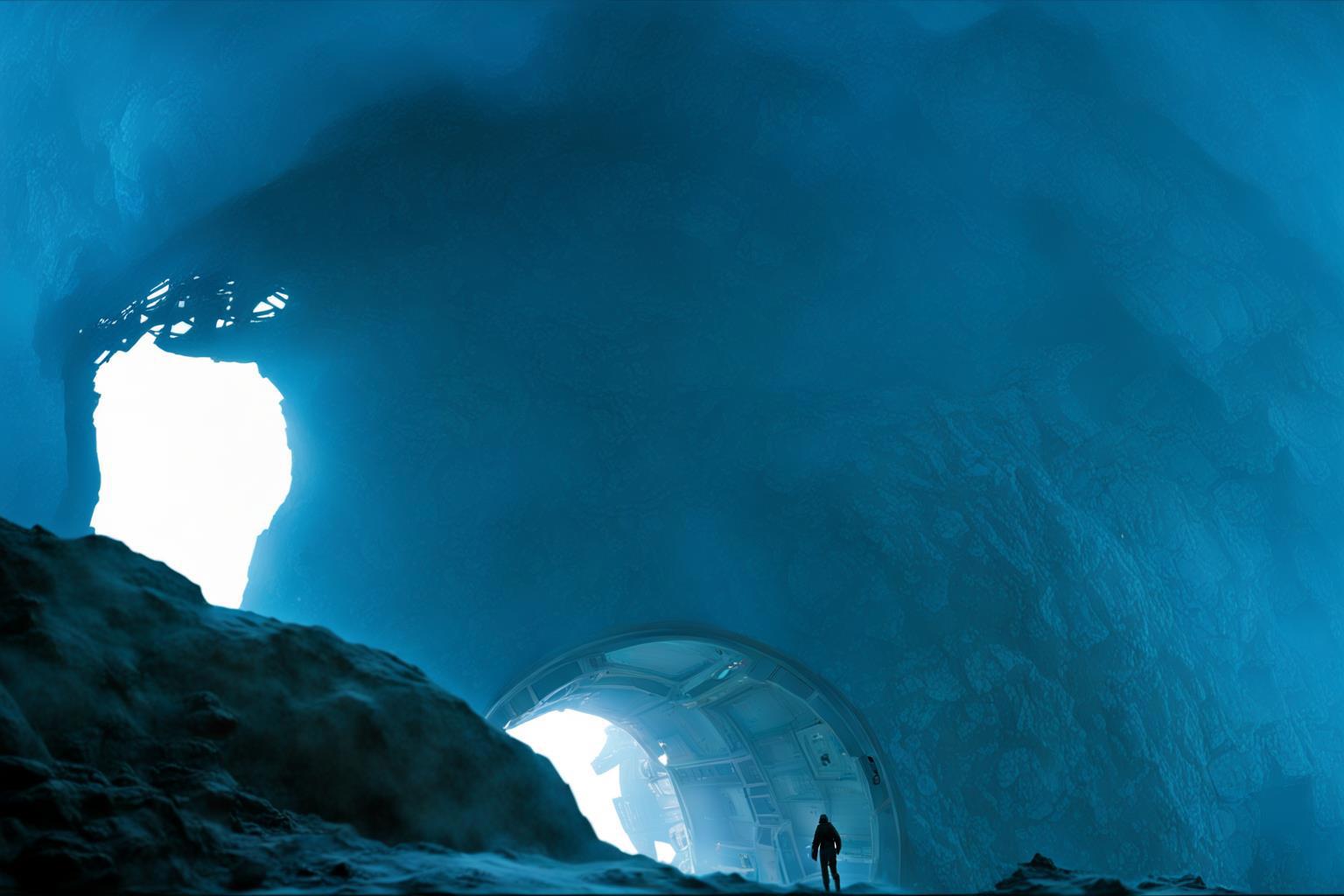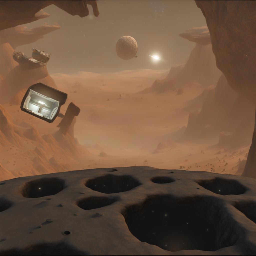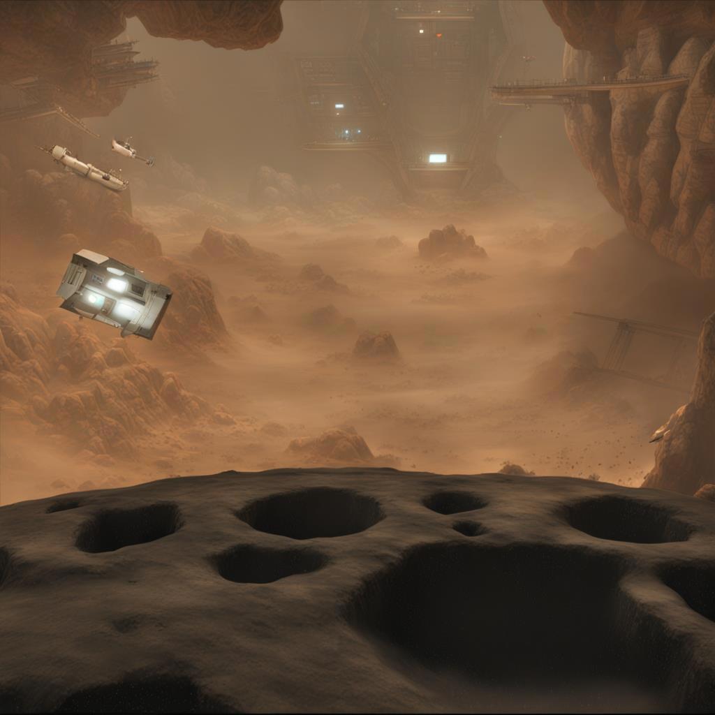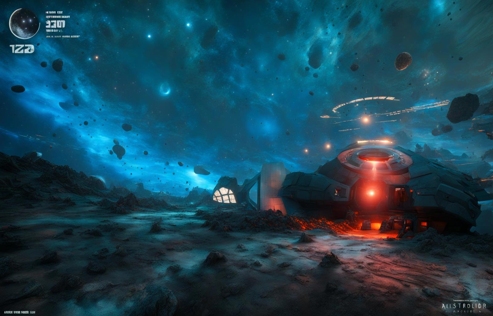 Вид из окна астероидной базы. Покажите интерьер внутри базы.