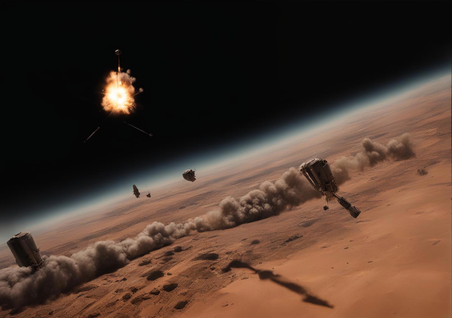 Это референс. Реальное фото поверхности Марса с высоты орбиты Фобоса и поверхность Фобоса наложена в реалистичном месте.