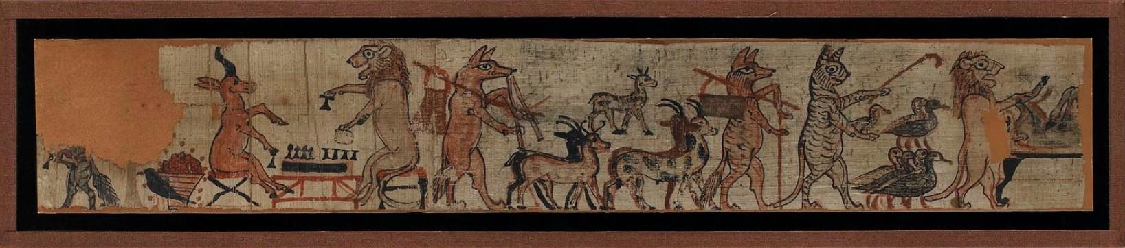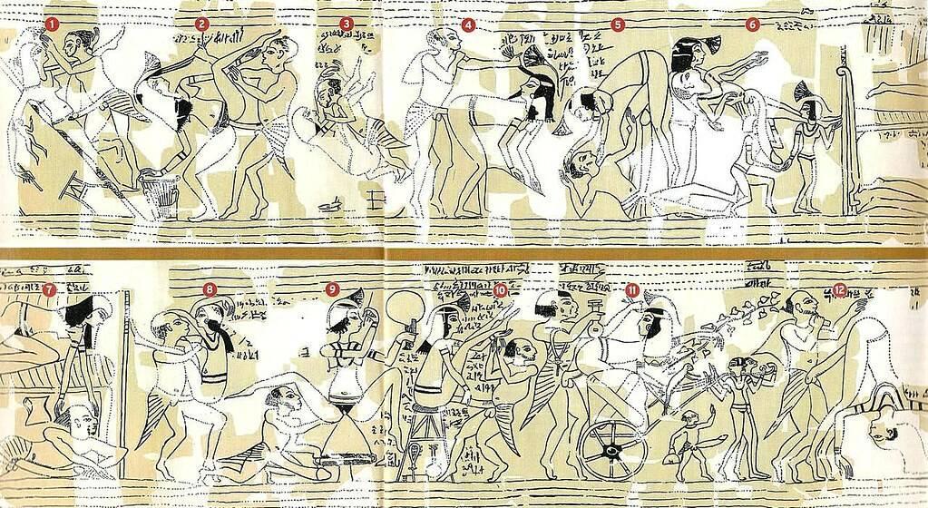 Справедливости ради, замечу, что из 27 изображенных на папирусе длинною в 2,7 м сценок, лишь 12 являются чудовищно непристойными. Остальные – это невинные рисунки явно сатирического характера, где основными действующими лицами являются животные. И в целом папирус представляет собой набор иллюстраций к каким-то известным в то время историям, поговоркам, афоризмам и проч.