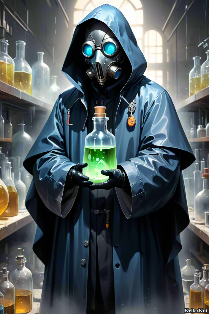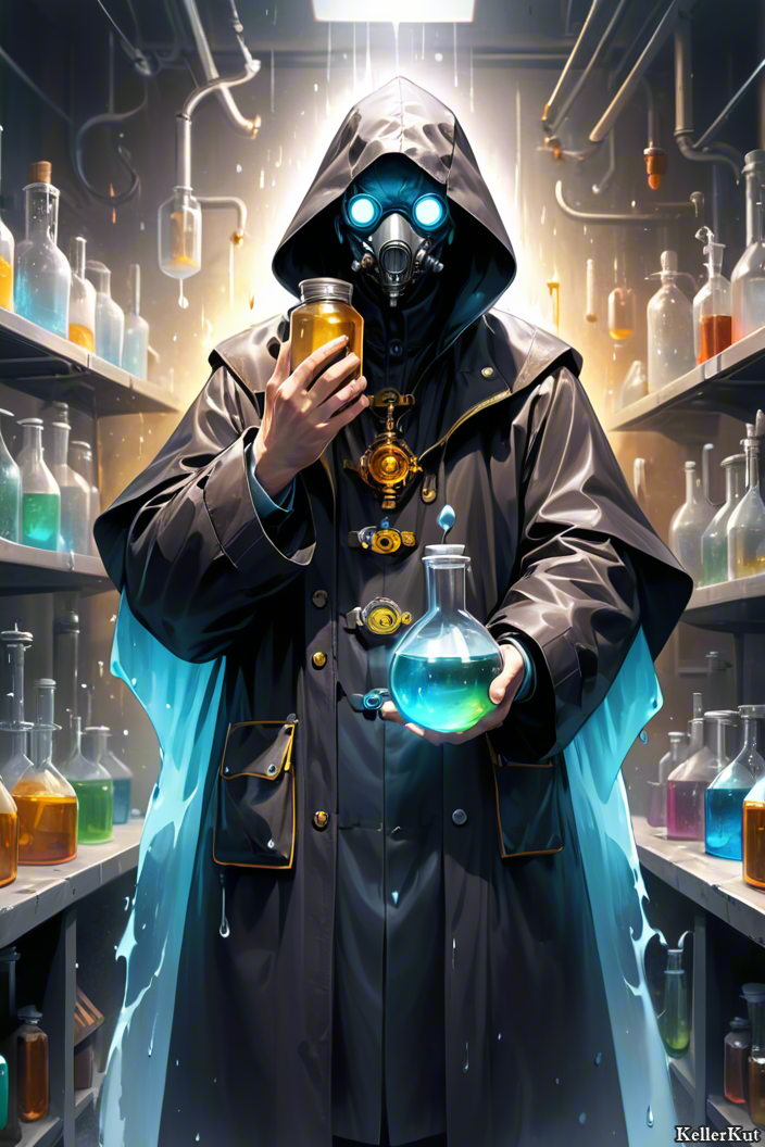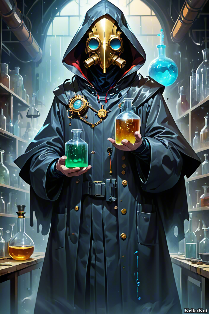 Там где фэнтези, сразу же появляются различные магические зелья и эликсиры. А раз так кто-то должен же их готовить! И хотя основанная цель алхимии это поиск философского камня, превращающего свинец в золото, они остаются незаменимой частью фэнтези миров. Так давайте представим одного из этих творцов различных цветных субстратов! И да, вы уважаете химию?