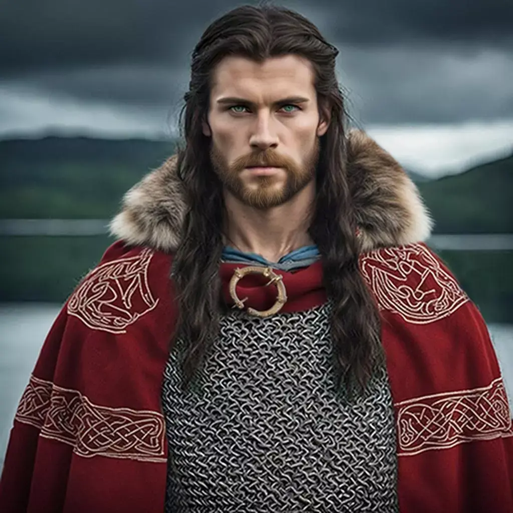 Костюм, конечно, нельзя назвать в полной мере историчным, но это уже около дела, нейросеть поддается дрессировке. Вот даже древнескандинавский орнамент сетка нарисовала, хотя я ее не просила. Не зря мы с моим соавтором Еленой Станиславовой столько ее мучим. А работаем мы в нейросети Mage. На второй "картинке" мне ещё дополнительно пришлось немного "почикать" усы в фш.