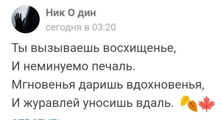 Не чувствуя веса, с отраженьем своим говорит.Тихо сердце, как осень, горит,