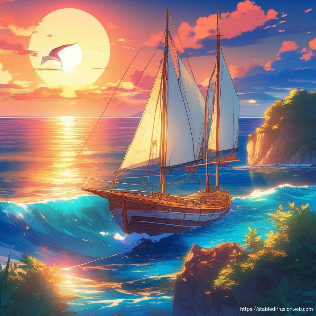 "Красивый кораблик плывет по волне,