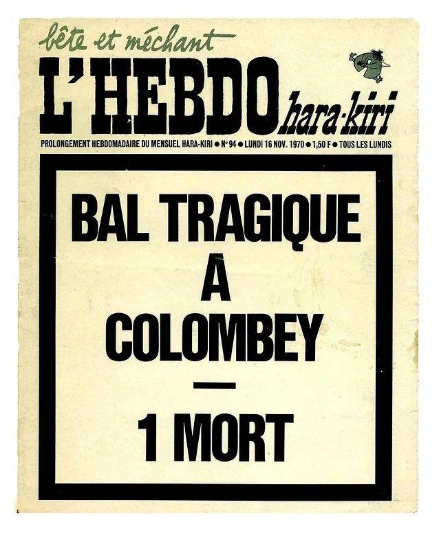 Спустя неделю сатирический журнал Hara-Kiri Hebdo изобразил на обложке газетный заголовок в траурной рамке, который гласил «Трагический бал в Коломбе: один погибший». На выход журнала был немедленно наложен временный запрет, на его рекламу и продажу несовершеннолетним — постоянный.