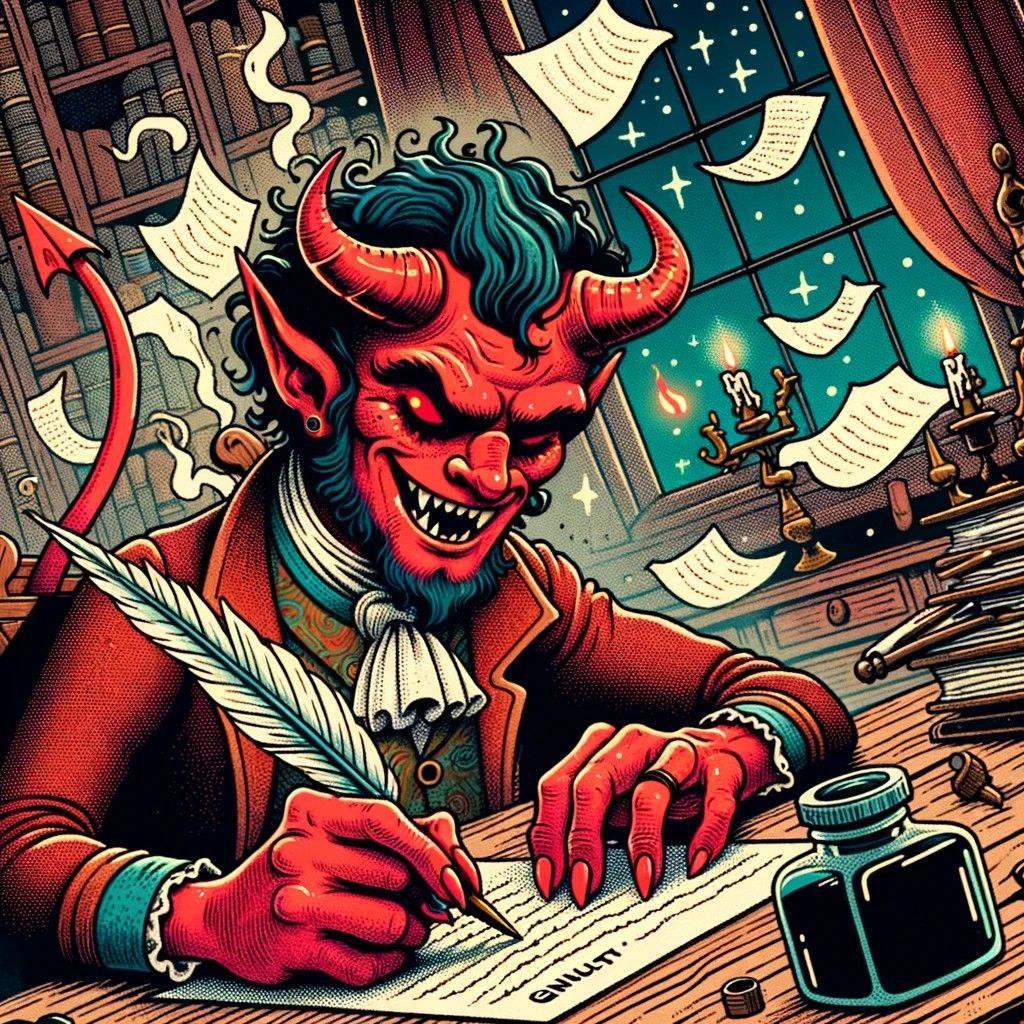 Автор: Рэйда ЛиннПопросил нейросеть нарисовать мне иллюстрацию для "Писем Баламута" Клайва Льюиса. Получилось, на мой взгляд, отлично - выражение лица у Баламута подходящее. Хотя сам Льюис, полагаю, не одобрил бы подобный стиль.