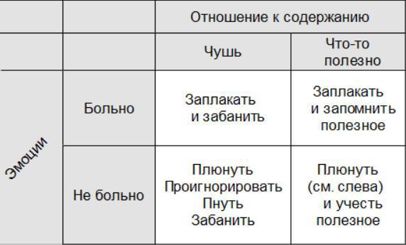 Добавка-пояснение: реакция на содержание критики и реакция на форму или цели критика — это две совсем разные реакции.
