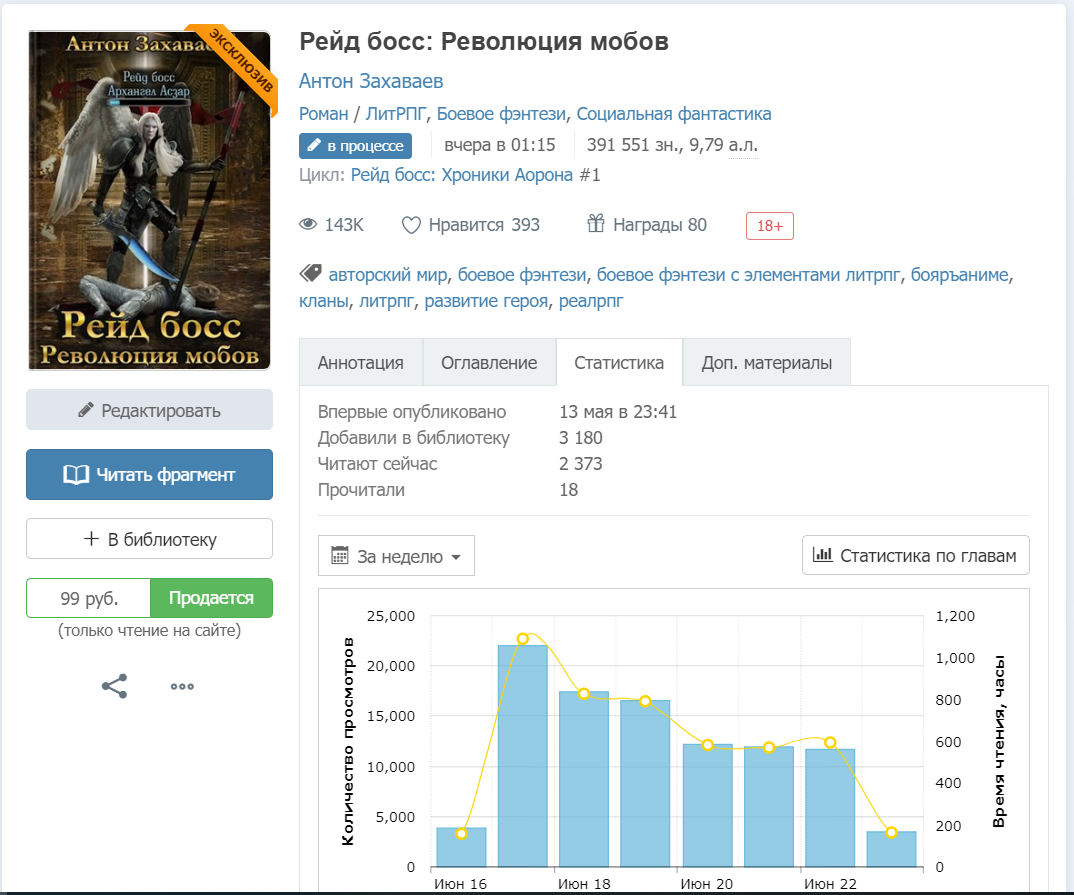 Теперь о планах. План на ближайшее время один: Завершить первую книгу дилогии Рейд босс. Причем книга эта будет самостоятельным законченным томом, без всяких "оборвалось на самом интересном месте". (Люди покупают книгу, и люди должны на выходе получить книгу, ибо дробить том на "полу-тома" и продавать каждый как отдельную книгу... мне кажется не очень этичным).