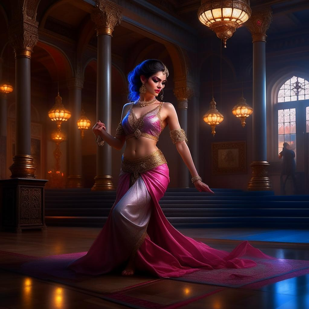 Лелей села прямо на паркет. Прикрыла глаза. Ждала. Движения танца были поначалу даже незаметными – девушка играла с браслетами, вынуждая их подпевать необузданной тиффалейской музыке. Ритм ускорялся, и Лелей поднялась, потянулась следом за ним, пытаясь догнать, ухватить чудо нежными ладонями. Девушка танцует, выгибается и заигрывает с толпой – в нее летят цветы. Поймав розовую лилию, Лелей закрепляет ее за ухом, посылая воздушный поцелуй дарителю, подмигивая. Плывя по залу, она принимает необычные позы, порой – на грани приличия. Руки, казалось, живут отдельно от тела – звенят браслеты, сверкают в неистовом темпе каменья перстней...