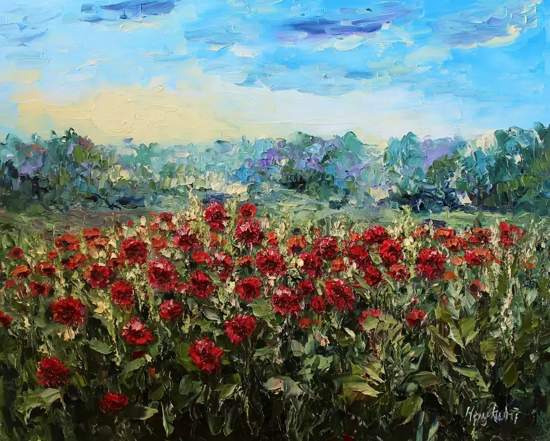 Художница привносит в свои картины обширное владение теорией цвета, врожденное чувство ритма и композиционные элементы.