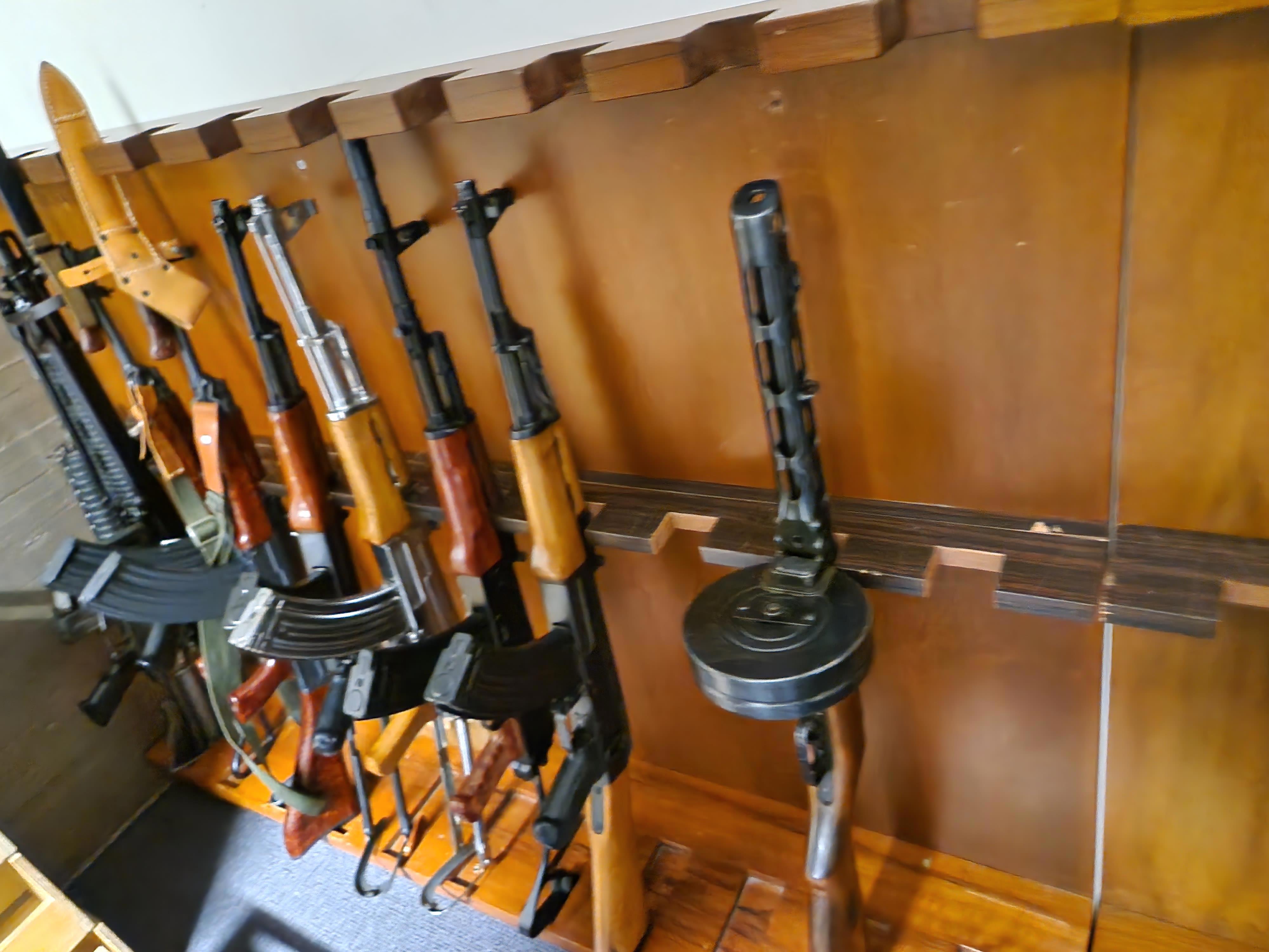 В ней имеется маленький музей, а рядом с входом – барельеф с очень узнаваемым пистолетом. Да и у винтовок тоже приклады характерной формы.